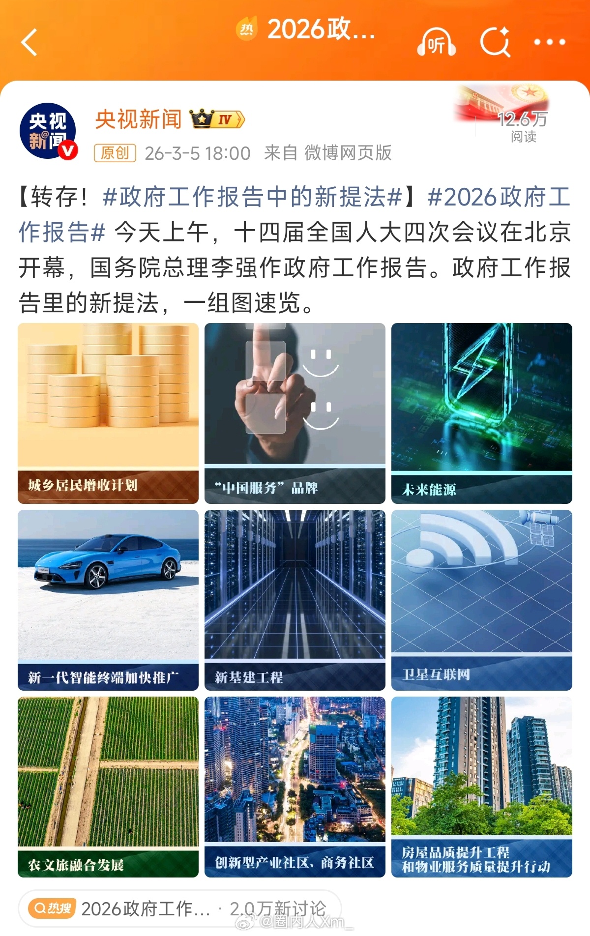央视新闻传送门网页链接政府报告中的新提法2026政府报告小米汽车