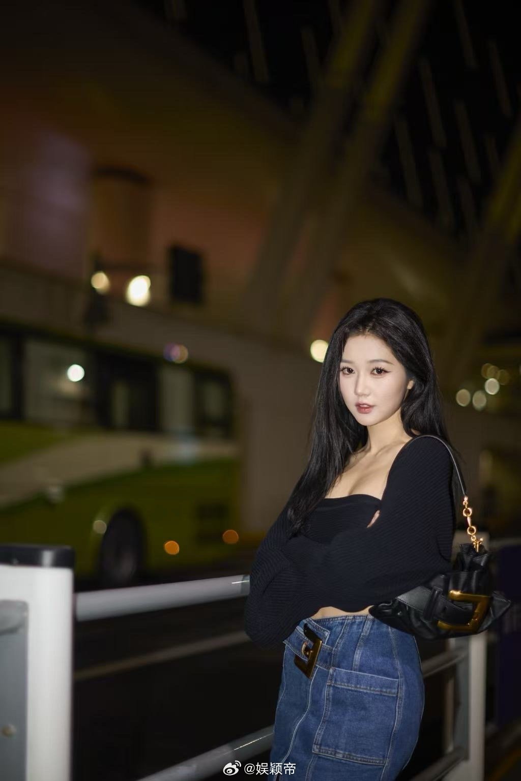 刘亦菲这条裤子挺养生,毕竟降温了肚脐眼必须护住啊