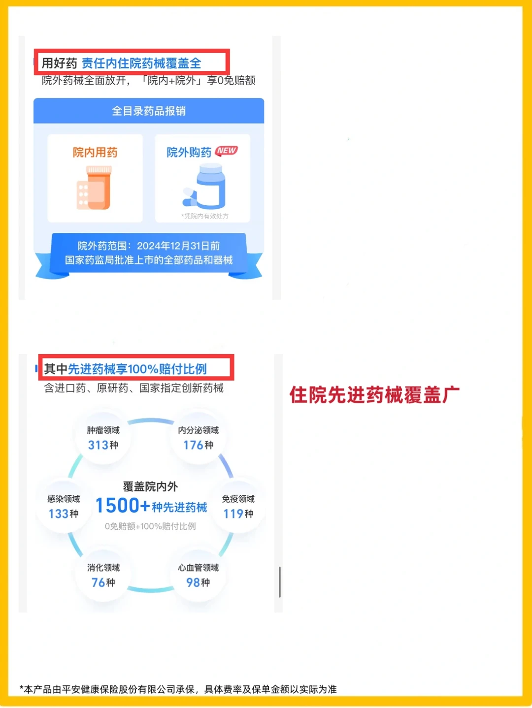 🌟住院期间的进口药、原研药、创新药均可正常赔付;经处方审核通过后,院外用药也能赔付。其中 1500 多种先进药械更可按 100% 比例报销,让孩子用上效果更好的药少受罪