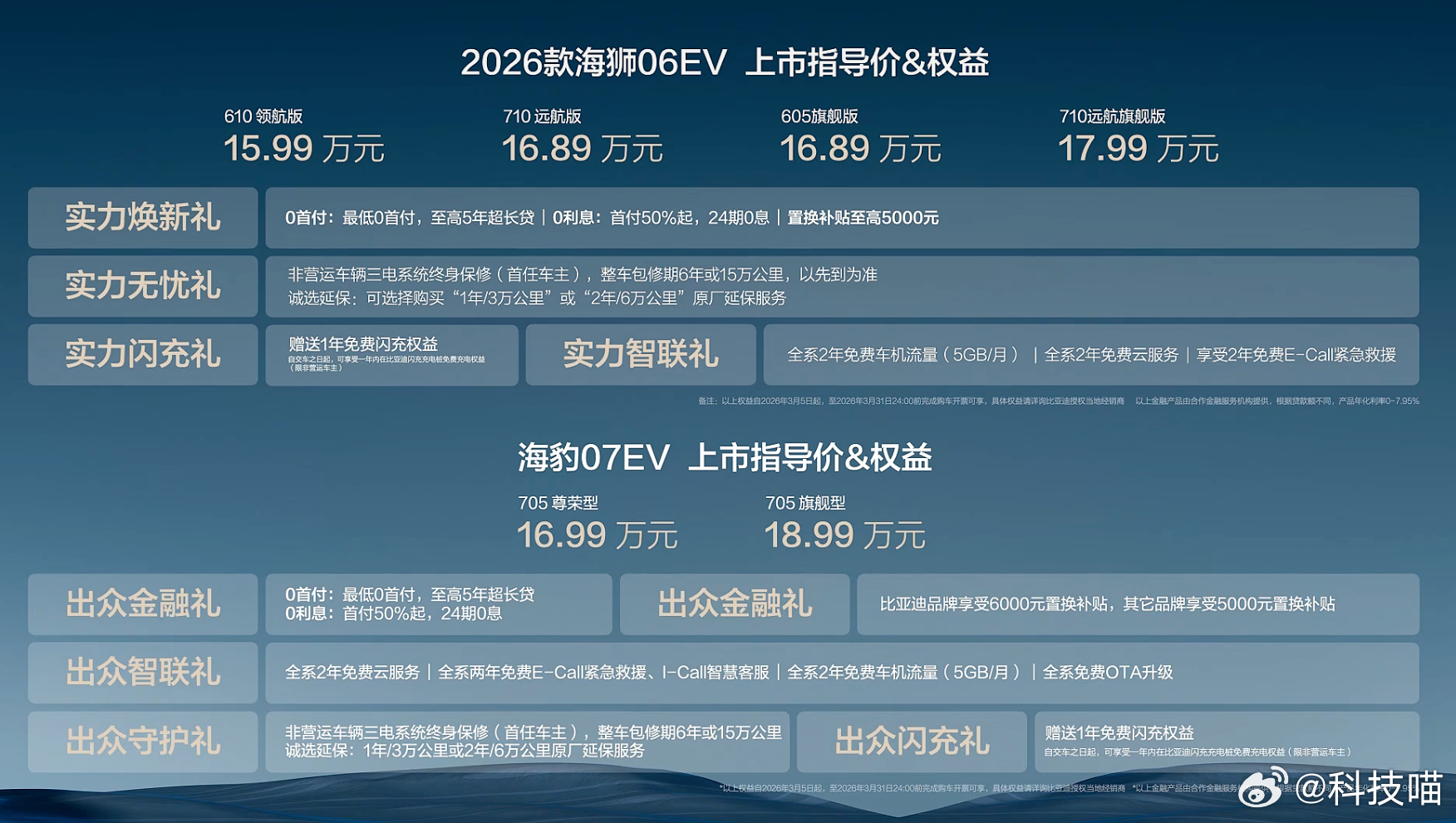 大唐:今年上半年上市宋Ultra EV:预售价15.5-18.5万,3月底上市2026款海狮06 EV:15.99-17.99万海豹07 EV:16.99-18.99万海豹08:二季度上市钛3闪充版和钛7 EV闪充版:3月13日发布2026款仰望U7:65.8万元起2026款仰望U8:100.8万元起2026款仰望U8L:130万元起