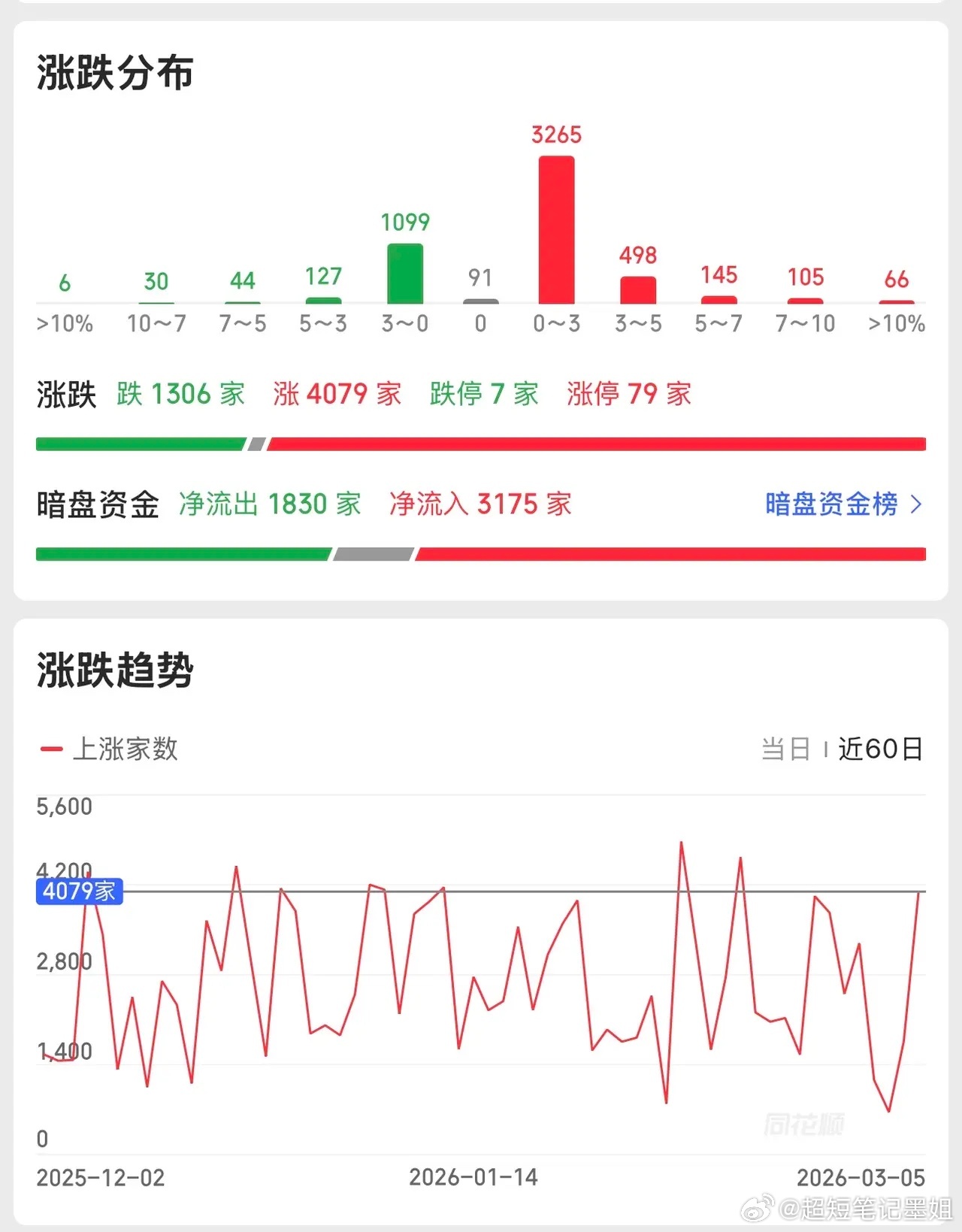 这几天的行情,总给人一种“下跌如山倒,上涨如抽丝”的感觉。个股跌的时候,5-6个点的跌幅很常见,那架势像是在抢筹,生怕少亏一点;可涨的时候,0.5-0.6个点都算难得,小跌跌一毛,暴涨却只涨一分,这样的涨跌节奏,让很多人都觉得无奈。