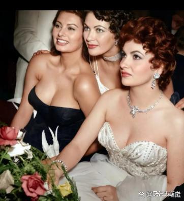 这张1954年的老照片中,展现了索菲亚·罗兰、伊冯娜·德·卡洛和吉娜·劳洛勃丽吉达的风采。