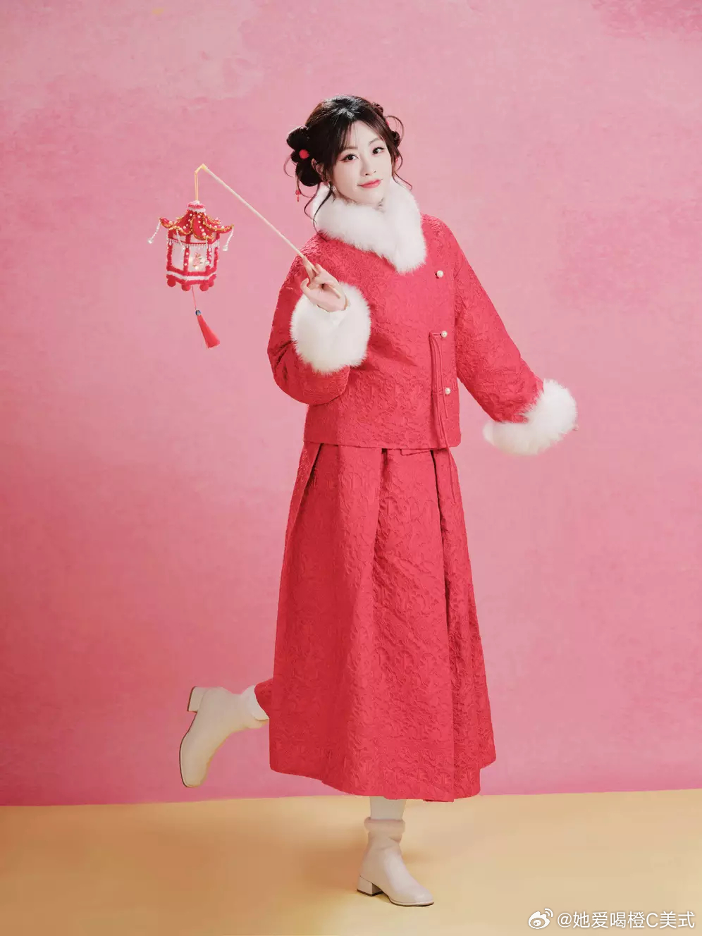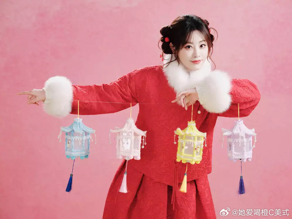 祝绪丹手持小灯笼活泼灵动 浅笑温婉充满新春喜气