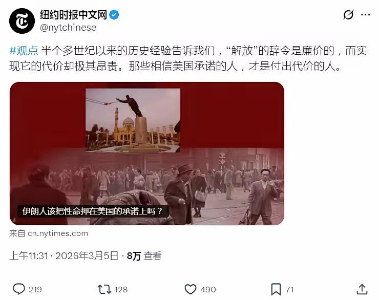大殖子们别误会,他们还没有抛弃你们,这种情况顶多就是批评你们工作不力!其本质是政见不同而引起的美国党派撕裂!这是反特朗普的,不是在反美,毕竟属于美国“官媒”!纽约时报一直是为美国民主党派服务的! 你应相信美国的承诺!也应该相信你们心中所谓的文明灯塔!