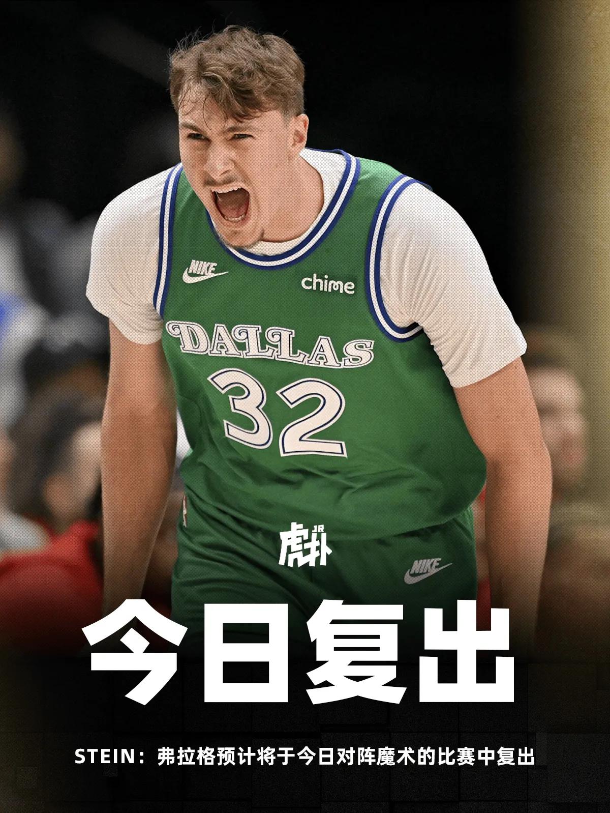 再不复出最佳新秀就跑了。此前有消息说,独行侠考虑让弗拉克本赛季直接报销,但是今天紧急复出,谁都知道这是为了最佳新秀而复出的,到了现在这个阶段,谁都知道最佳新秀不是弗拉格就是克里普尔,如果弗拉格本赛季再不打的话,最佳新秀肯定是克尼普尔的。
