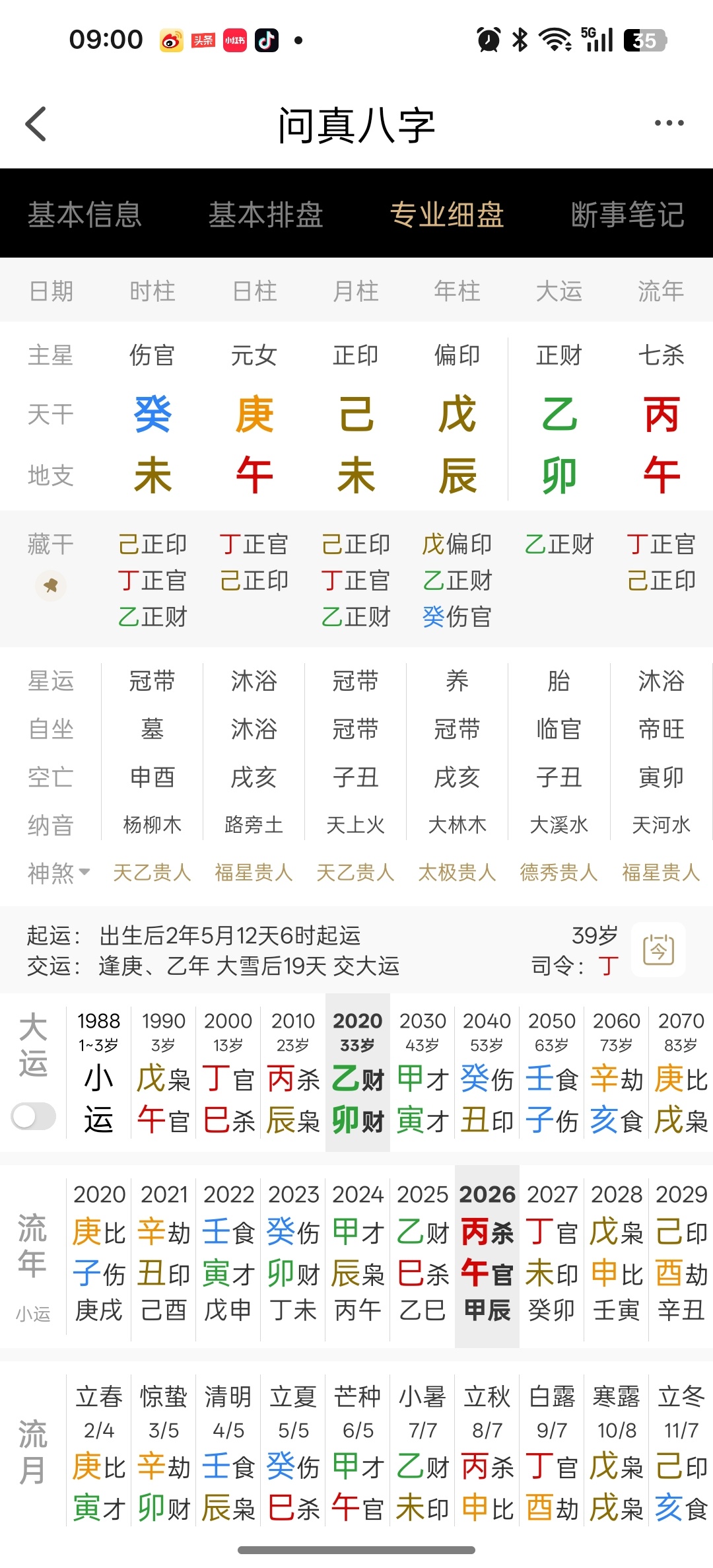 今年乙卯大运,丙午流年,大运流年财杀非常旺。他在这种年份要跟外界,去与异性、官杀去叫板,实际上绝对不可能占上风。很容易被直接捂嘴。而且舆论战队,也不会朝自己这边倾斜。