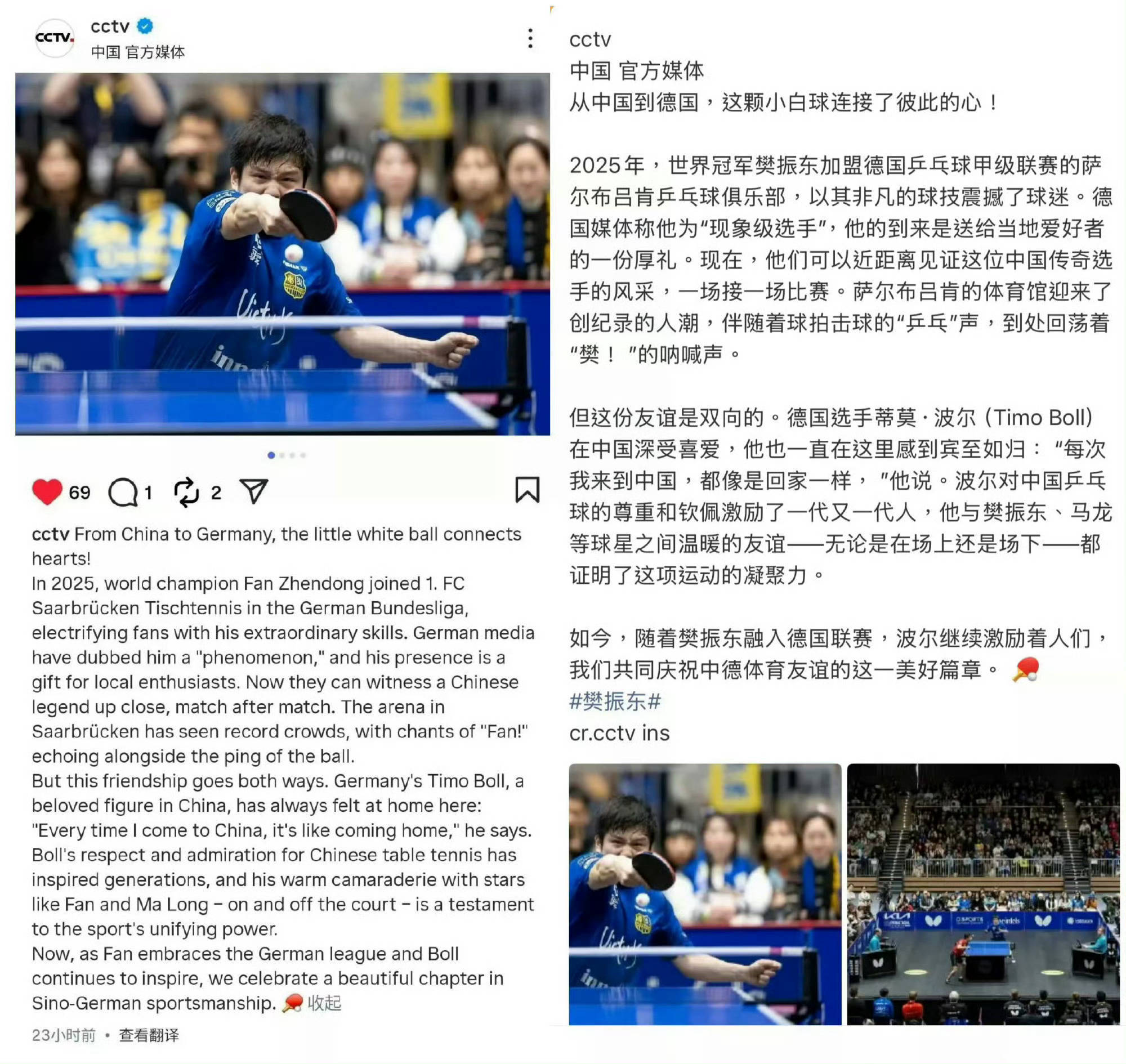 刘国梁高度肯定樊振东 去德甲、外国打球的人多了,但成为世界球星的人只有樊振东,大家都心知肚明的事补充:樊振东远赴欧洲打球是不得已而为之,全靠自己一己之力迎来柳暗花明,球迷不会忘记背后故事🫡