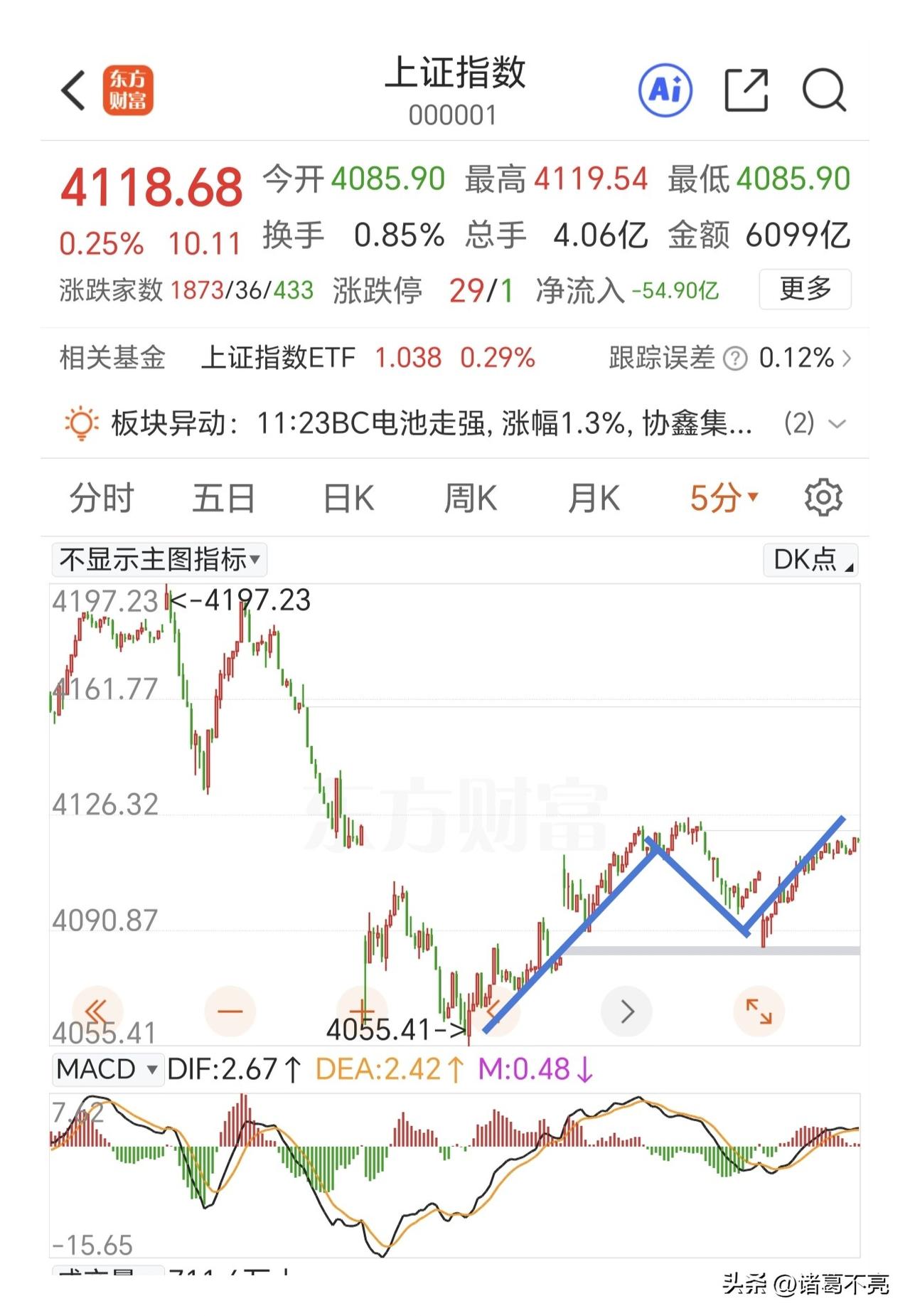 下午小心冲高回落。 两市缩量普涨,好消息就是抄底的资金没有跑,但是向上修复没有量是不行的,小结构上中证2000走了微5浪的反弹,上证指数则是走了abc反弹。 中证2000是提前大盘反弹的,因为上证指数由于石油有色等板块的托举,大盘是随后一段时间触底反弹。两者触底时间不一样,反弹到顶时间也会不一样。 下午有重磅会议,看看能不能出什么利好,有利好刺激会提前推动指数改变结构。一般的利好不会影响二次回踩的趋势。大盘要跌吗 指数企稳 指数要回落 大盘股下跌 A股早盘反弹 股票回升 指数筑底