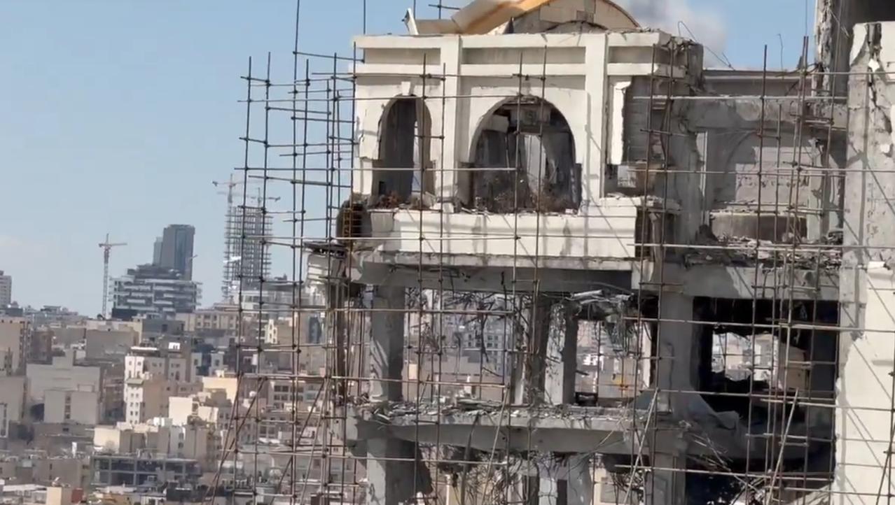 西德黑兰,德黑兰西部的满目疮痍,照片中是阿里·沙姆哈尼(Ali Shamkhani)的顶层公寓,可以看到去年6月在12天战争中被毁的、属于伊朗伊斯兰共和国国防委员会秘书阿里·沙姆哈尼的顶层公寓建筑还被脚手架围着,去年的没有修好,不远处的爆炸还在不断的增加中。