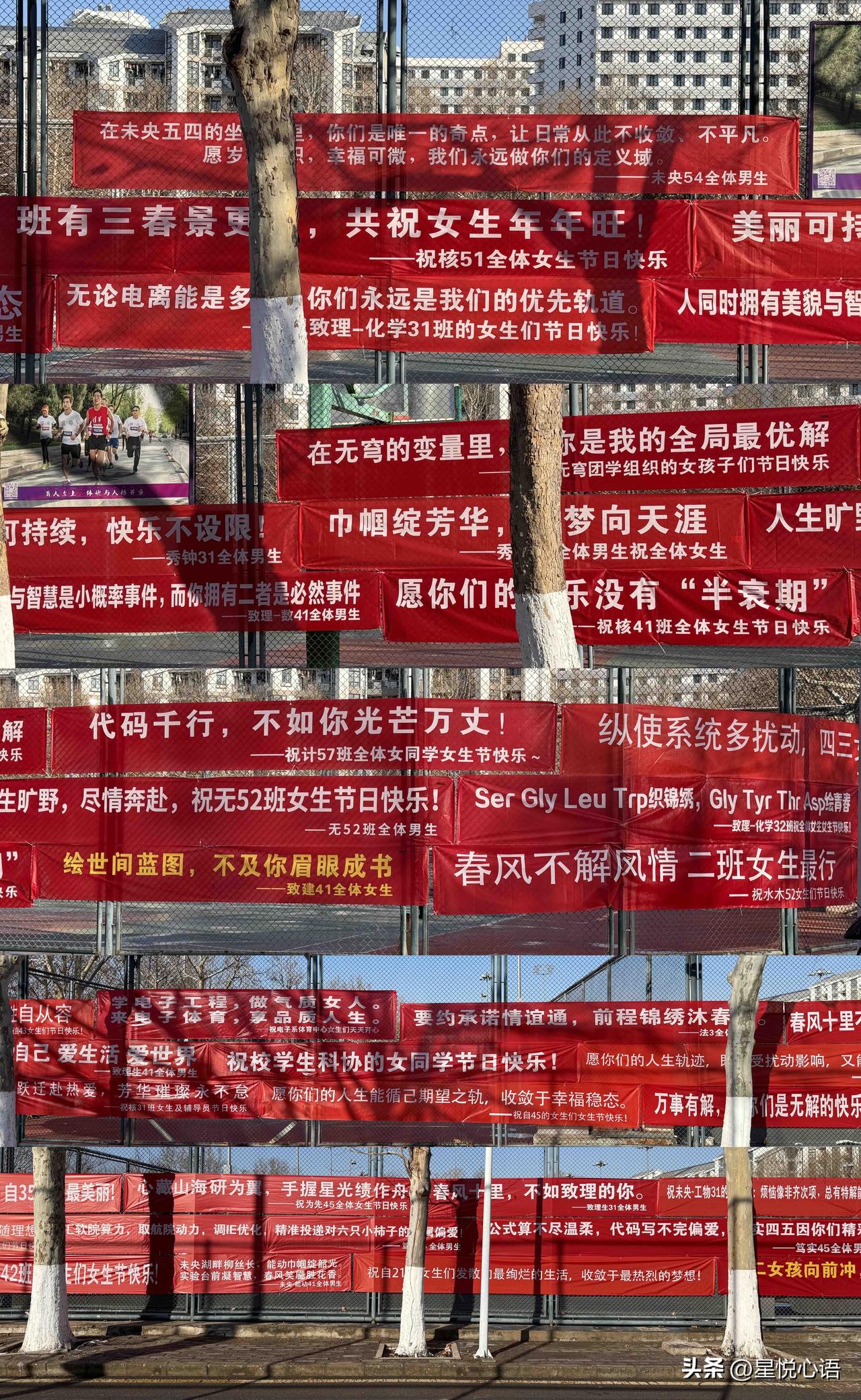 3.7是清华女生节,今年的横幅 没有腻歪的宠溺,全是骨子里的尊重与力量。 “祝你强壮,祝你自由,祝你铮铮,祝你昂扬” “我思,故我自由;我在,故我主宰” 每一句都掷地有声,满是对女性的认可。 不再把女生放在被保护的弱者位置, 而是愿她们有底气,有力量,主宰自己的人生。 理工科的浪漫,原来可以这么直白。 这样的祝福才最动人, 无关容貌,无关娇柔,只愿她们独立闪耀。 愿所有女生,都能活成这般模样, 强壮自由,铮铮昂扬,永远做自己的主宰!