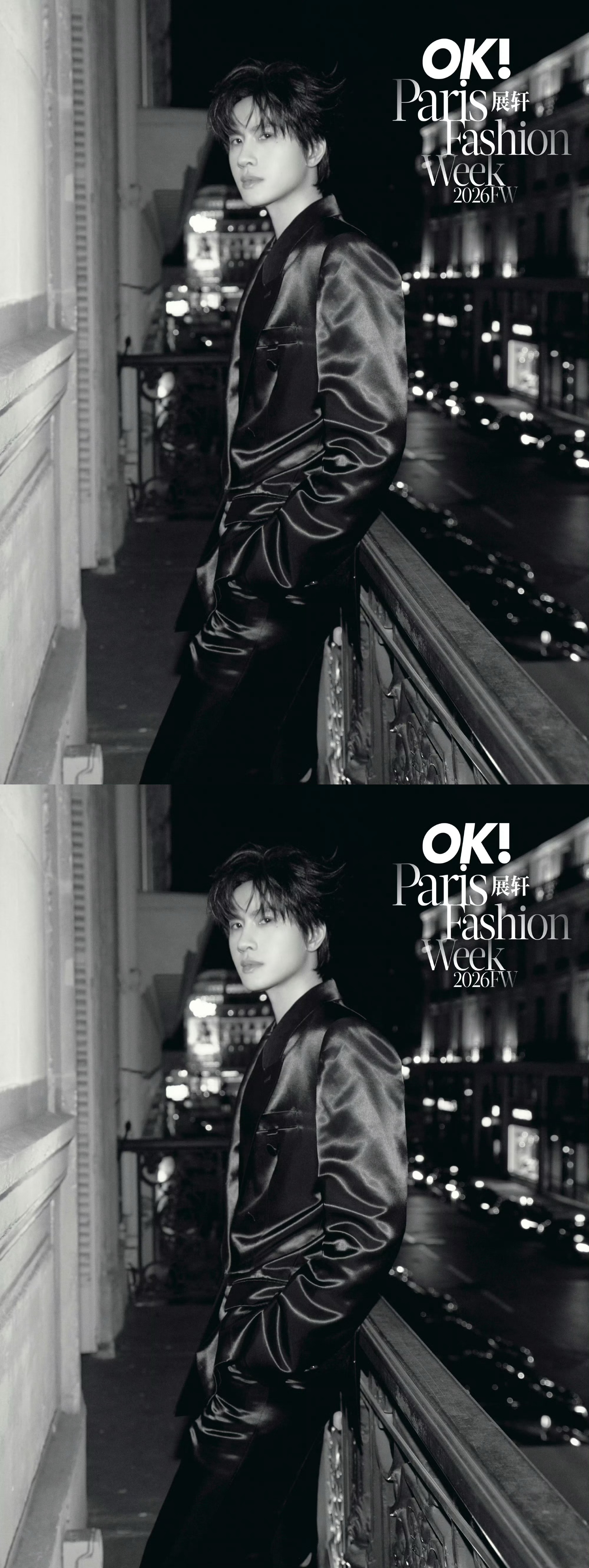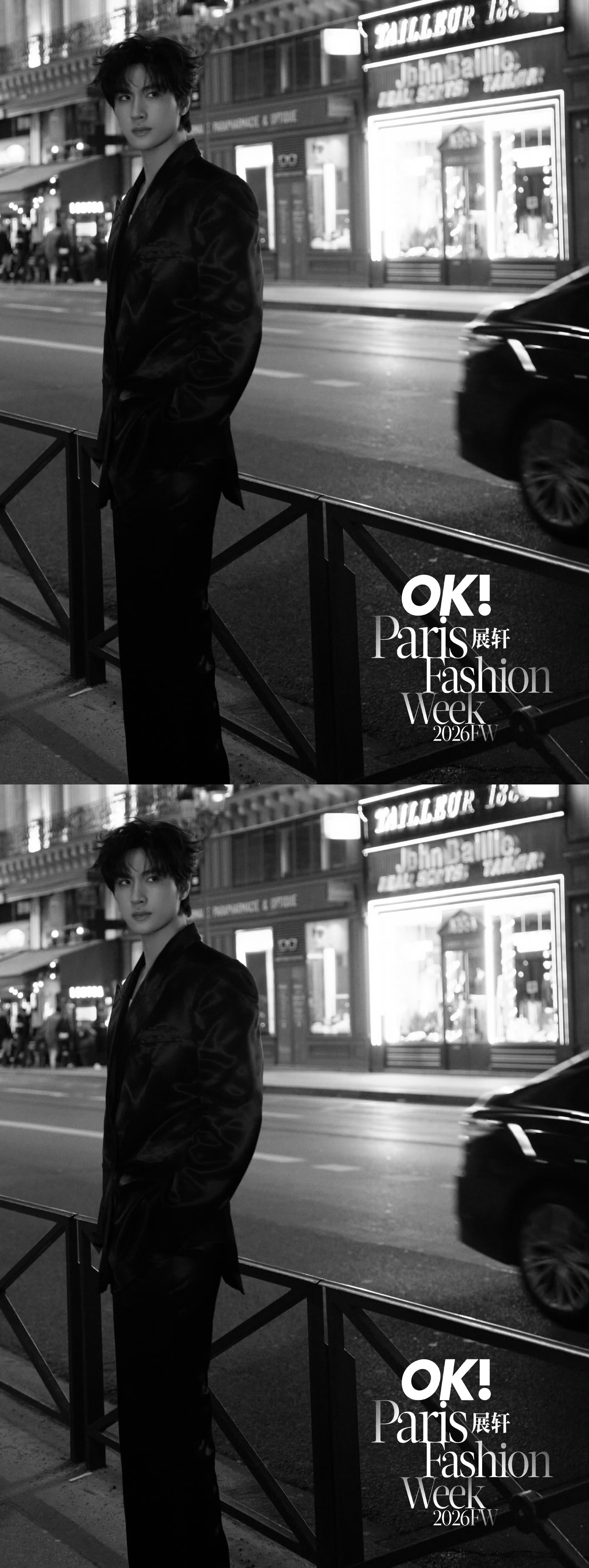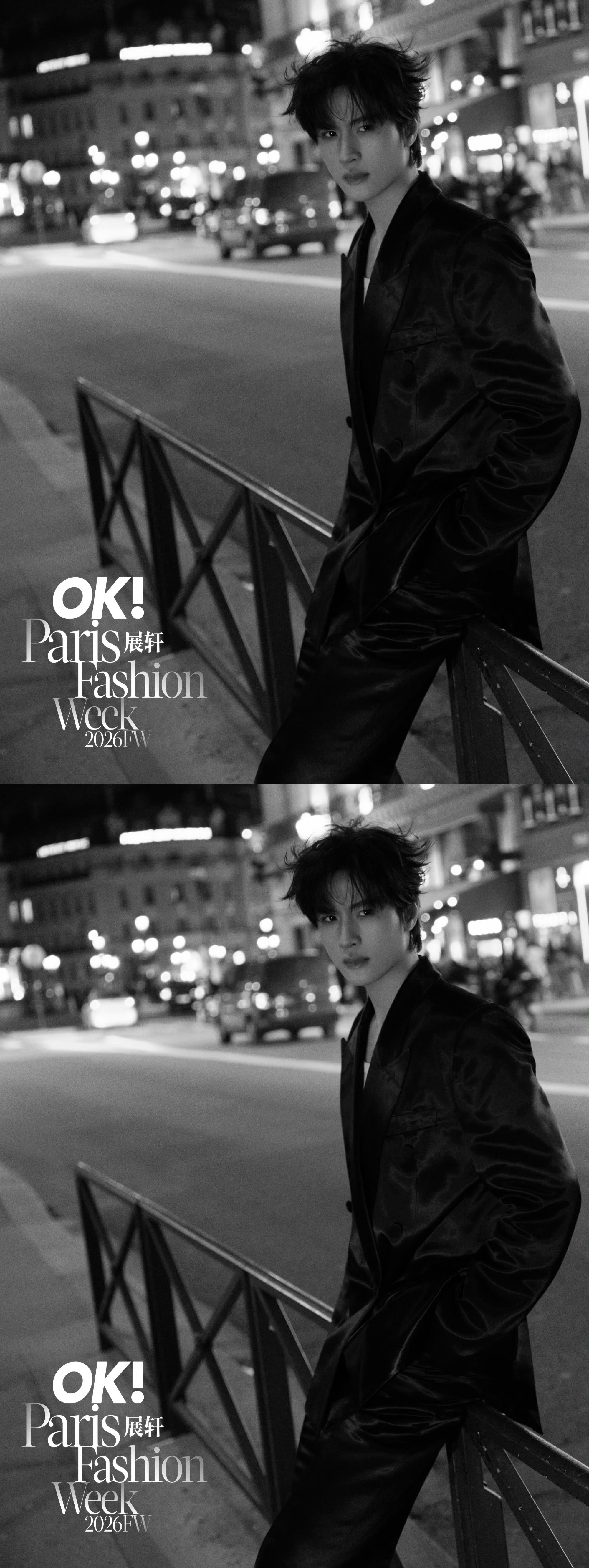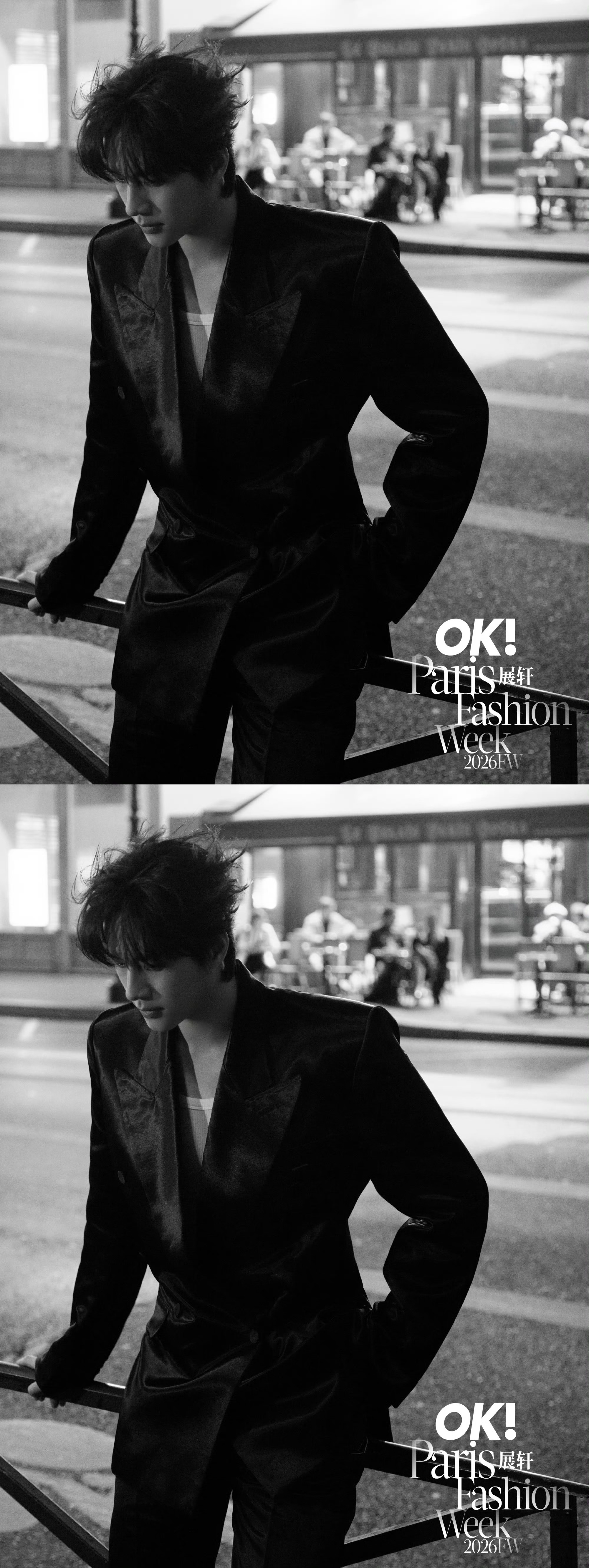 展轩看秀第三套造型展轩巴黎时装周看秀第三套造型出图,全黑西装置身巴黎街头,太帅啦