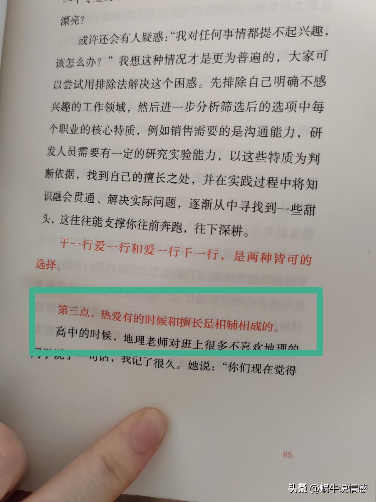 热爱和擅长,有时候是相辅相成的。 今天看书的时候,看到上面的这句话,而且作者还贴心地举了个学生时代的例子。 作者学生时代的一个地理老师告诉她们,有时候她们喜欢某一门课,往往是因为那门课她们考得好。 学生对某门课感兴趣,在那门课上面就比较专心,同时会花费更多时间和精力,这样一来,知识点就掌握得比较扎实,顺其自然地,考试容易考得好。 而考得好的科目,会带来很多成就感,从而激发了对这门课的学习动力,表现出来就是对这门课更有兴趣、更擅长,这样就形成了一个正向循环。 热爱的会更热爱,会花很多心力去做,然后热爱的会变得更擅长,擅长后更有成就感,从而更加热爱。 其实不仅仅是学生时代的学习,工作上、生活中也是如此。 就我自己而言,平时有点强迫症,会比较喜欢收纳整理,每次收纳整理过后,看到原本乱糟糟的环境变得井然有序,心里会很满足,哪怕那个过程很累,也特别愿意去干。 久而久之,熟悉的朋友会喜欢让我帮忙打包、收拾、整理家里,说实话,每次都挺累,但忙完之后我会觉得很满足很有成就感,哪怕帮忙干活这个行为在别人眼里看来有点傻,但我乐在其中。 也会下意识更关注收纳整理这一块,在这方面也变得比之前更擅长更积极,要知道,我可是出了名的不爱干活的懒人啊。 然而我这个懒人的事实证明,正反馈会提高人的积极性,而热爱和擅长,会相互成就。