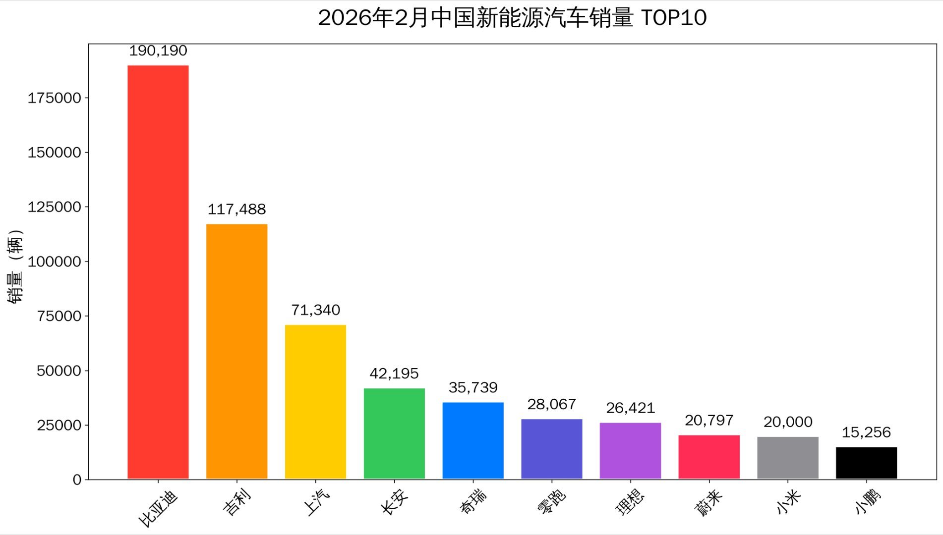 2025年比亚迪销量460万辆,然后就有人拿2月份说事,结果数据一看,比亚迪依然是王。2月比亚迪新能源车销量超过19万,比第二名多了8万辆,市场环境因素叠加2月春节档销售天数少,消费节奏放缓再正常不过了,但即便如此,比亚迪销售淡季表现依然稳健。值得一提的是2月比亚迪乘用车和皮卡海外销售了10万辆,同比增长41.4%,海外稳增扩大影响力,同行也来抄作业呀。而明白人也该知道,放缓不过是为了再次飞跃,大招在蓄力!3月2日,比亚迪官宣3月5日发布了颠覆性的技术发布会,消息一出,当日比亚迪A股📈8.36%,这就是技术革命的反响。比亚迪第二代刀片电池充电10%到70%只需要5分钟,到97%也仅仅9分钟,有这样的底牌在手,2026稳了。