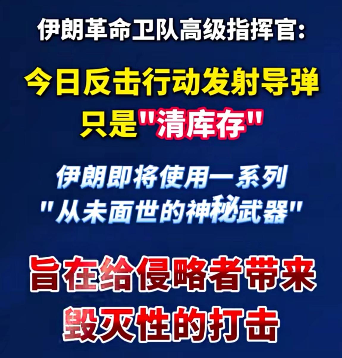 真急死个人啊! 伊军指挥官:这几天只是清库存,会亮从未公开的大杀器。 打7天了!赶紧把大杀器“法塔赫-2”高超音速导弹扔出去,不要搞威慑玩嘴皮子,就是一个劲的发射导弹、无人机、大杀器。 千万不要等,玩什么清库存,大杀器把美以打残打废,不然美以定点清除伊朗高层、导弹和无人机发射源头。 美以现在武装库尔德武装进入伊朗,采取进行地面作战,空中美以战机F-35、F-15、16掩护,B-52轰炸机配合。 等到美以和库尔德武装地面部队打进来,大杀器可就被毁掉了,急迫心情强烈呼吁,赶紧把大杀器扔出去。 俗话说:先下手为强,后下手遭殃。