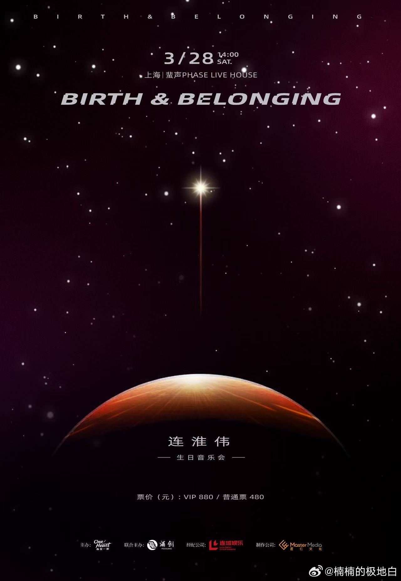 连淮伟上海生日音乐会官宣 连淮伟「Birth & Belonging」音乐会如约而至,3月28日上海相见,用歌声陪伴每一位支持者 连淮伟上海生日音乐会