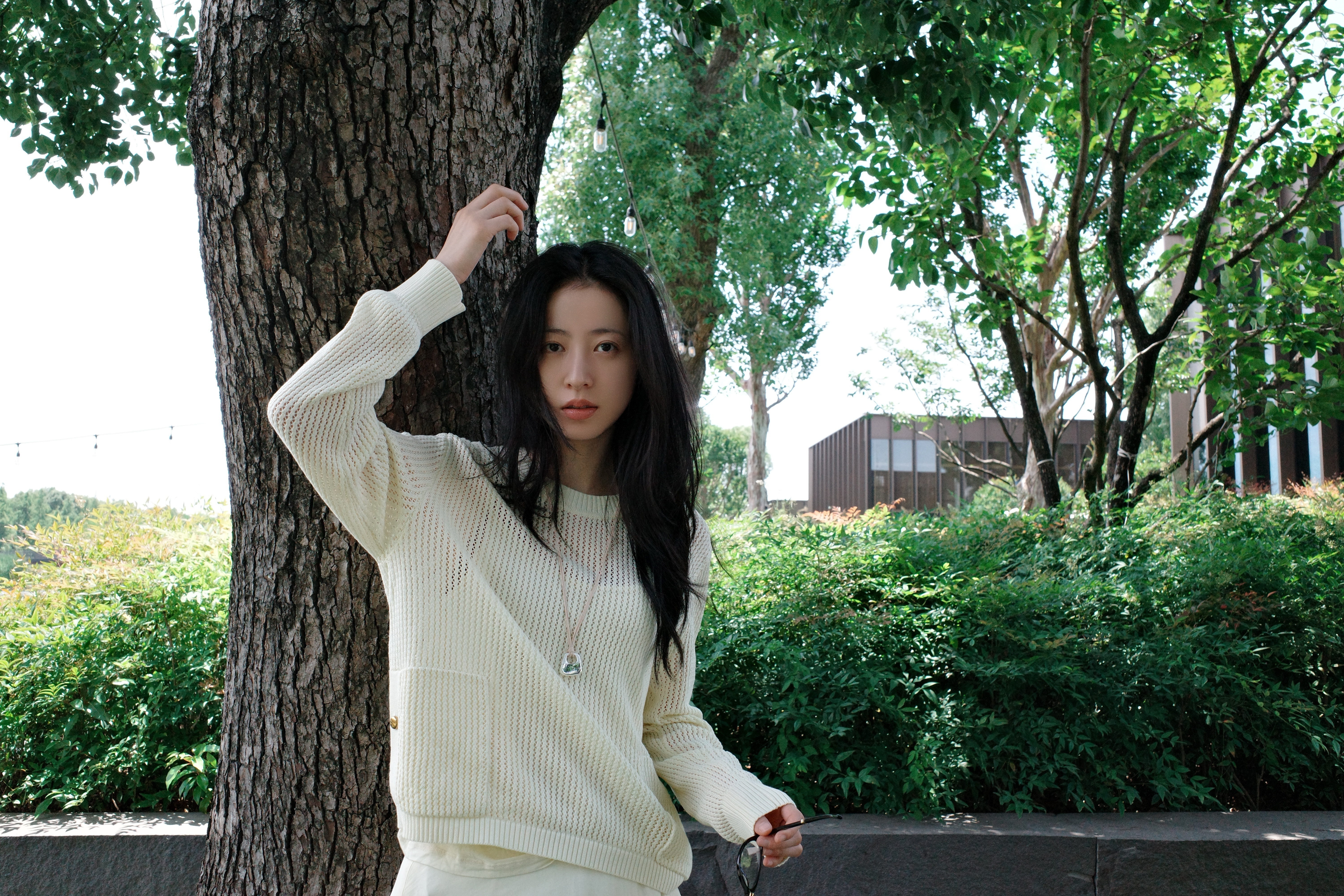 刘亦菲这条裤子挺养生,毕竟降温了肚脐眼必须护住啊