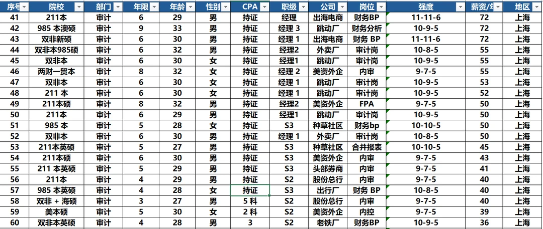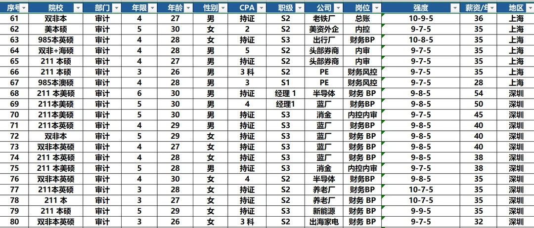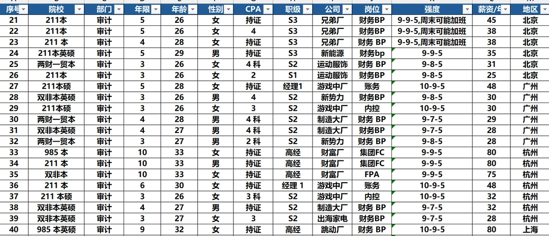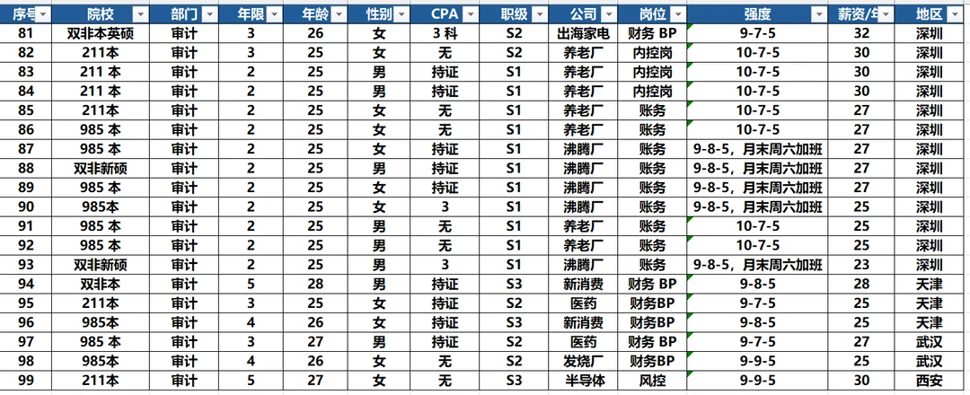 25年100个25年审计跳槽案例(城市强度年龄)