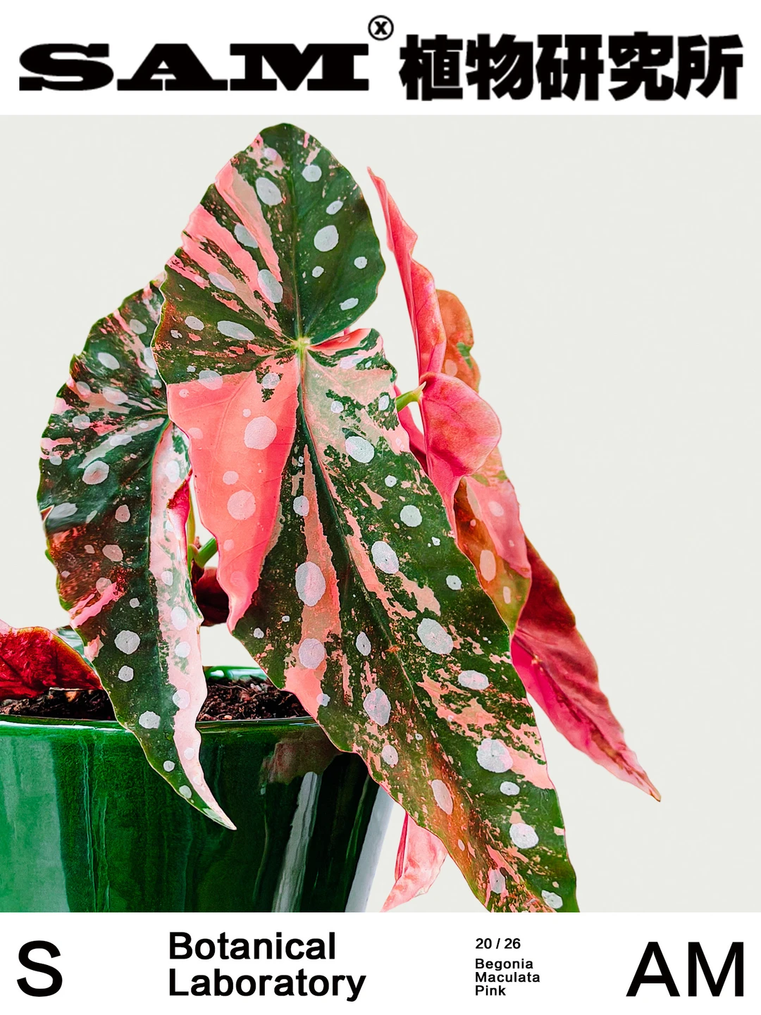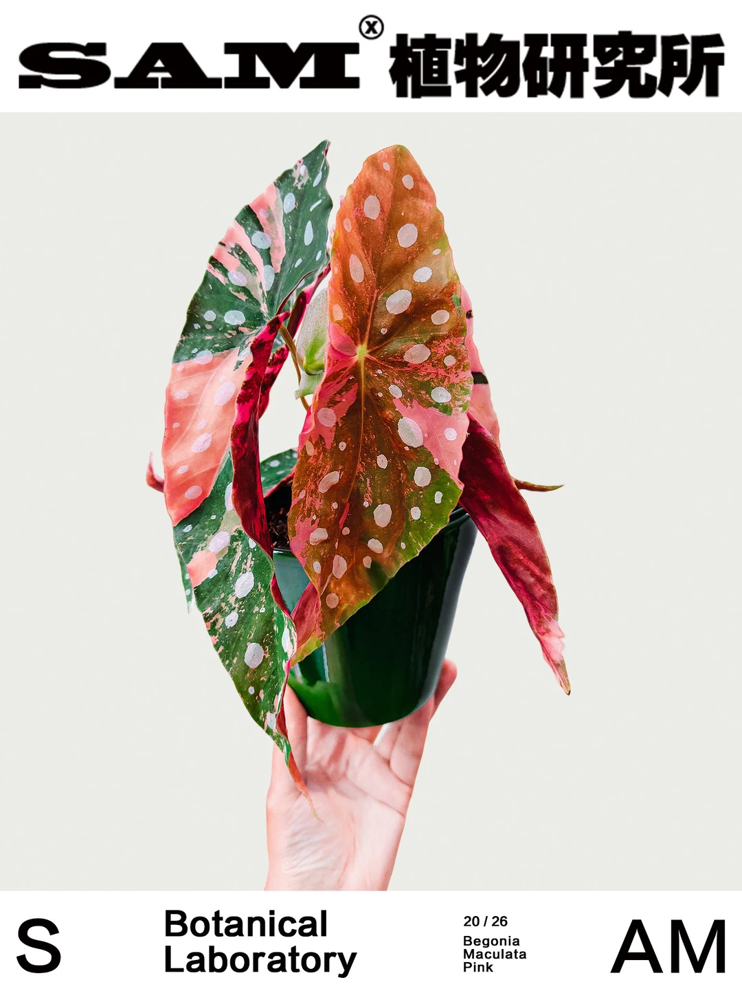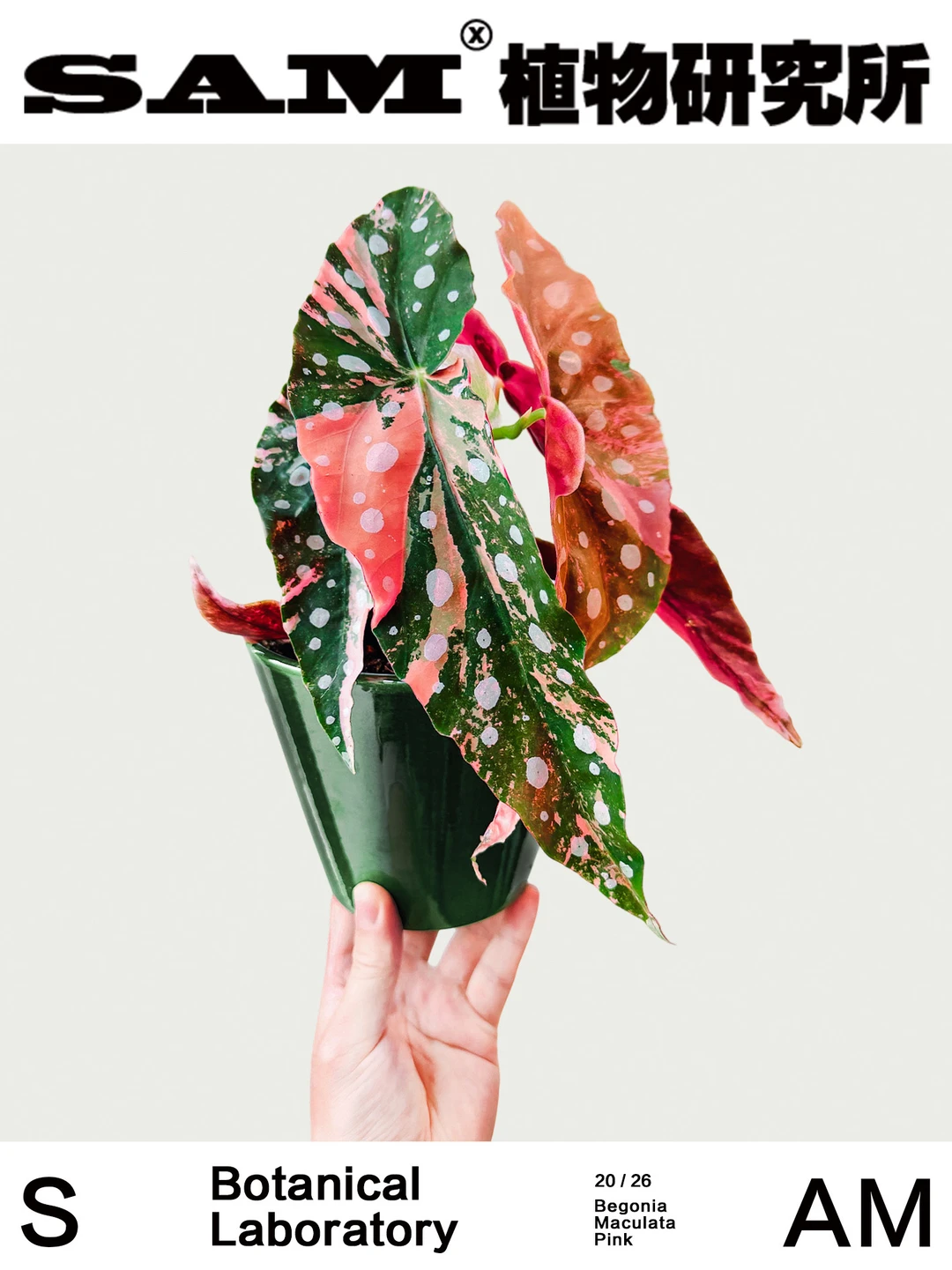 Begonia Maculata ‘Pink Variegata’ - 🍃Genus:秋海棠科秋海棠属多年生植物。 - ⛰️Origin:原种“鳟鱼秋海棠”来自南美巴西热带雨林。 - 🌿Shape:叶片狭长,正面呈哑光墨绿色和粉色锦化交织,并均匀分布银白色圆斑,背面呈酒红色,茎干具明显竹节状。 - 💚Tips:锦化植物一直是热植圈里的翘楚,在观叶植物里也一直是“收藏级存在”,今天SAM就来分享一款非常经典的鳟鱼秋海棠的锦化版本——粉锦鳟鱼秋海棠。第一眼看见它,就像撞见少女的银河梦境。粉锦属于自然锦化变异,因为粉色锦纹的随机性,每一株都像独一无二的艺术品。因此,相比普通的鳟鱼秋海棠,更为小众,粉锦也少女心满满,有的像云雾般轻柔铺开,有的像少女腮红般晕在叶脉之间。在光线下,墨绿、粉色交织在一起,银色波点有大珠小珠落玉盘的精致,在日光下闪闪发光,像一幅带着复古质感的油画,有中古画廊的艺术气质,自带古典美学滤镜。翻到叶背,则是浓郁的勃垦地酒红色,与正面的柔粉形成强烈对比。经典的船形,修长优雅,边缘卷着波浪弧度,像旋转时随风扬起的裙摆,藏不住的少女心事,把浪漫也写在了裙褶里。竹节状的枝干向上生长,有着热带植物特有的建筑感线条。养护难度来说,秋海棠类都比较适合新手入门,室内的散射光养护即可。 - 👨🏻‍🌾Caring: 1、光照:明亮光线环境养护,忌暴晒。靠近窗边但避免强烈直射日光。光线充足时,粉锦和银斑会更明显。 2、水肥:喜湿,土面干浇透水。适度空气湿度会让叶片更舒展。生长季可适量施颗粒缓释肥或水溶肥。 3、温度:喜温暖,适温 15–28℃。低于10℃容易受伤,冬天建议室内养护。 - SAM植物研究所®,关注我,为生活“家”点心意。 ⛲️工作室日常分享STUDIO 🚫图文原创,使用请注明出处,侵权必究。 -