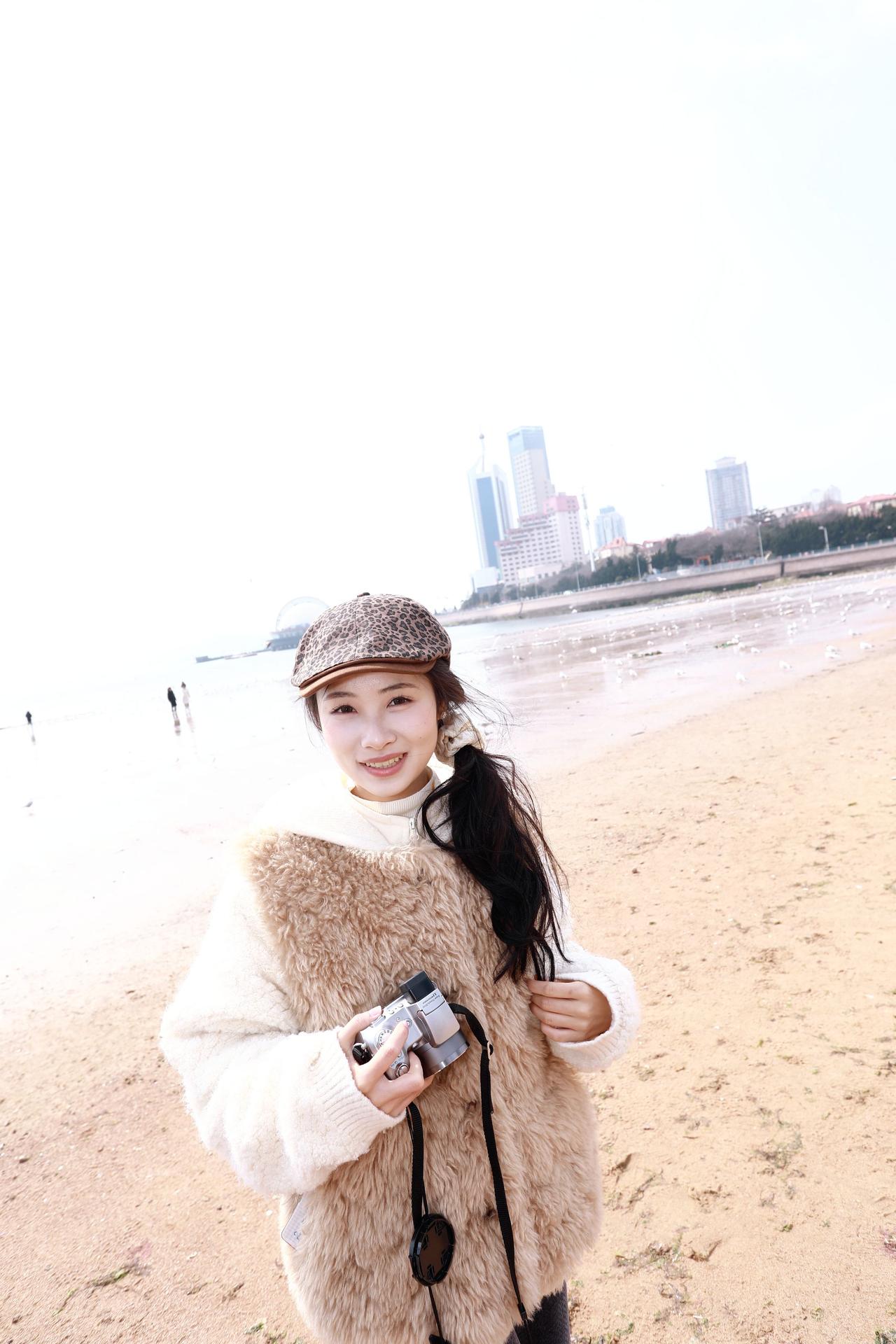 人像摄影约拍跟拍站在海边的你我和大海同框了青岛栈桥海鸥我镜头里的美女原创原