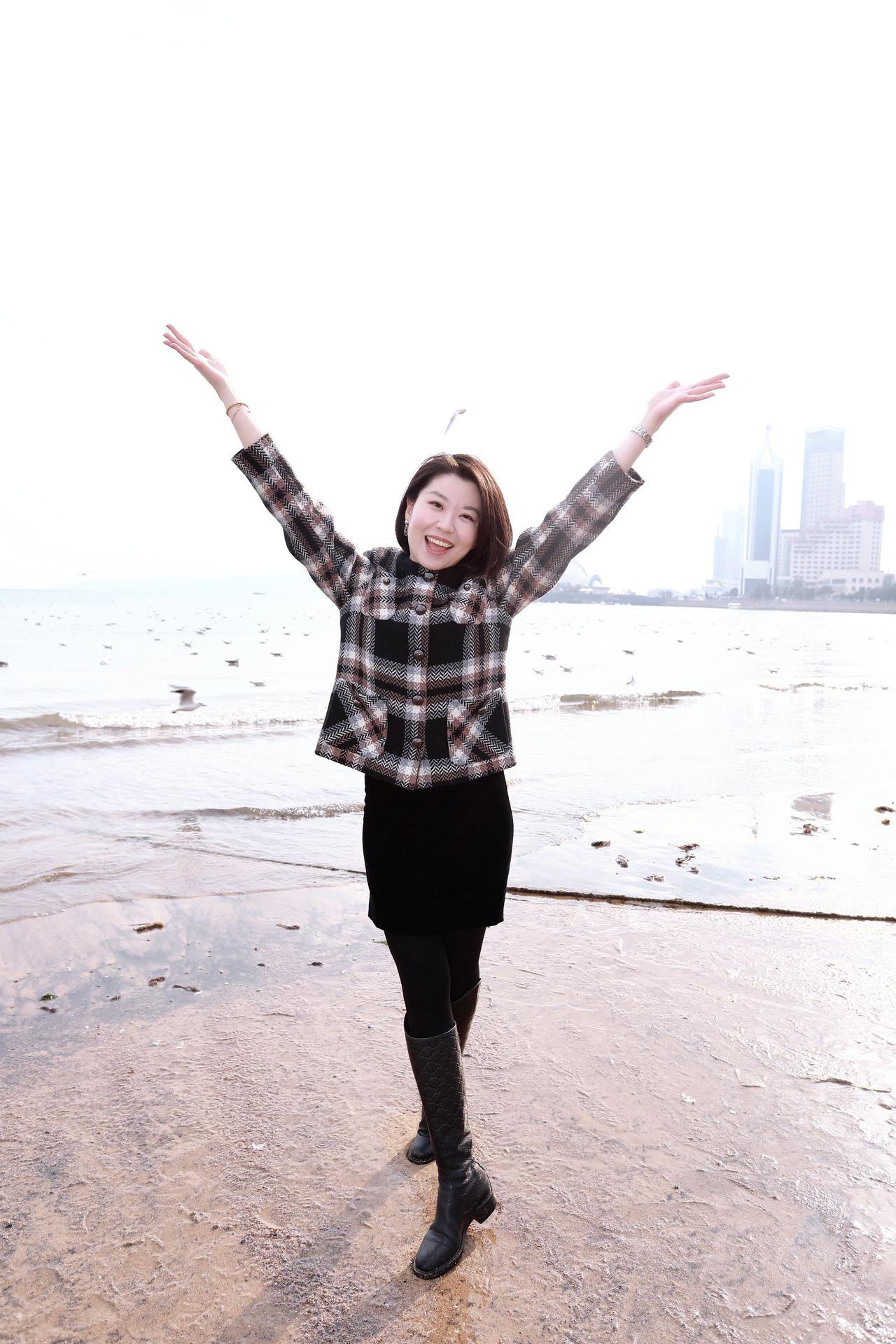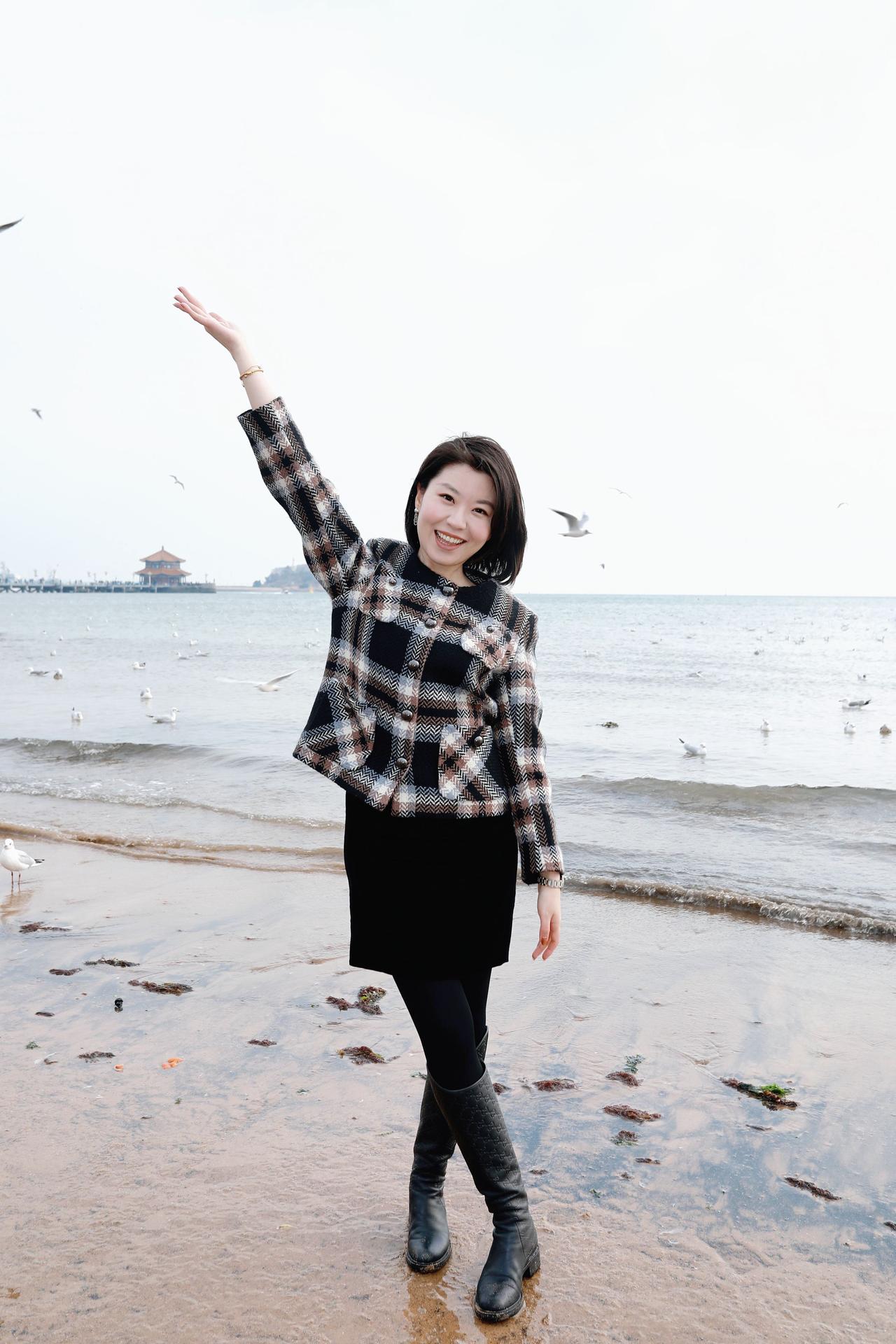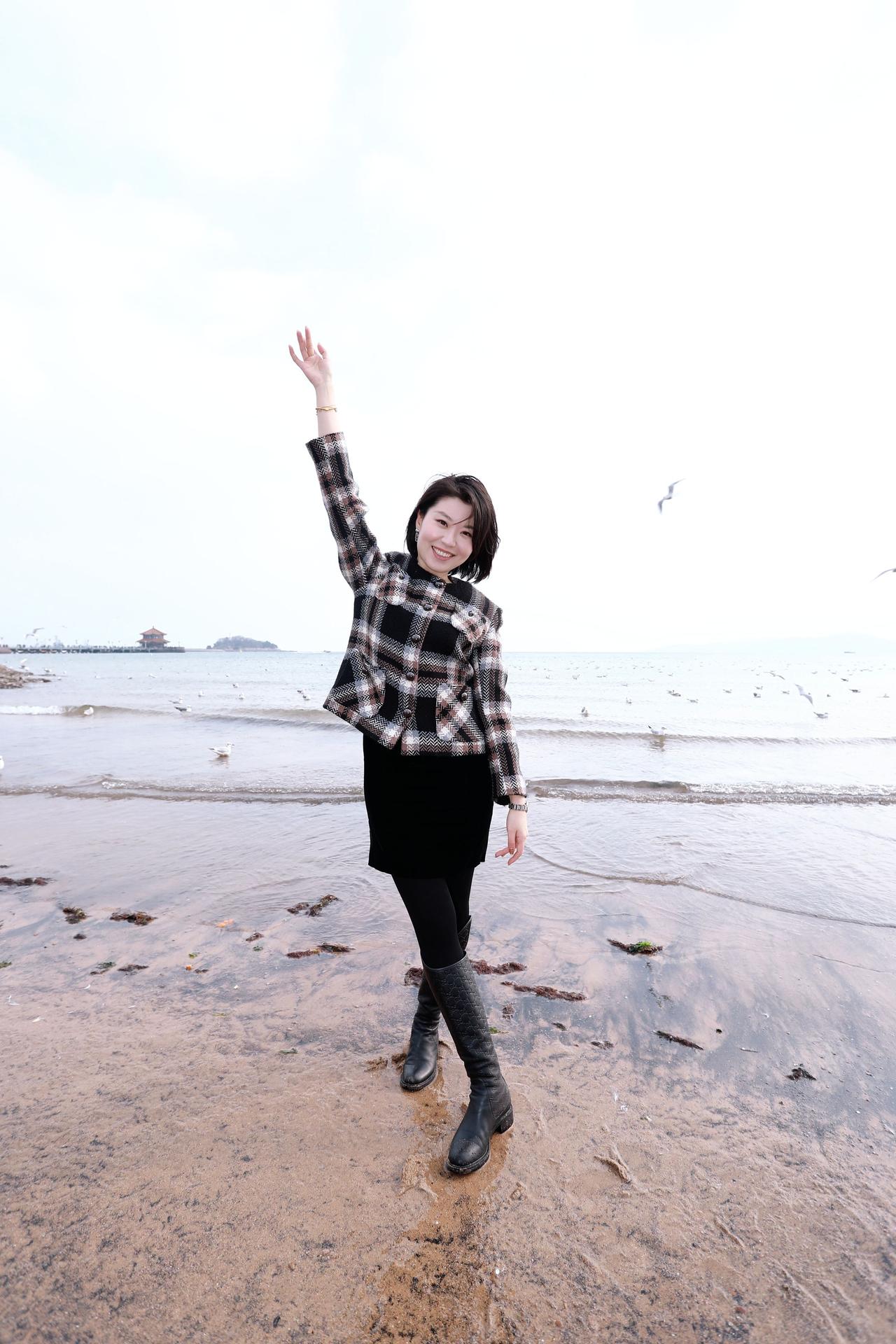 人像摄影约拍跟拍站在海边的你 我和大海同框了 青岛栈桥海鸥 我镜头里的美女原创原