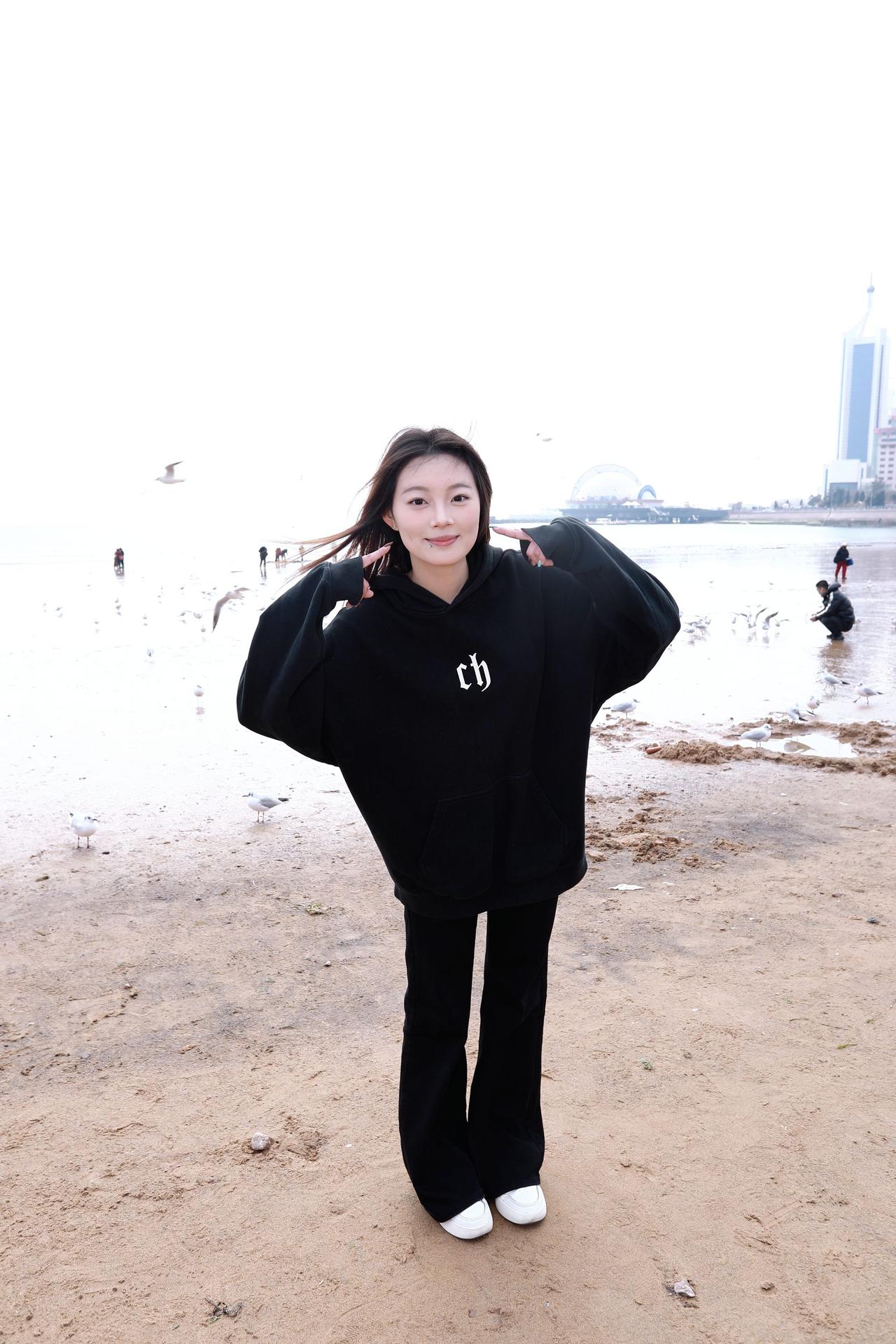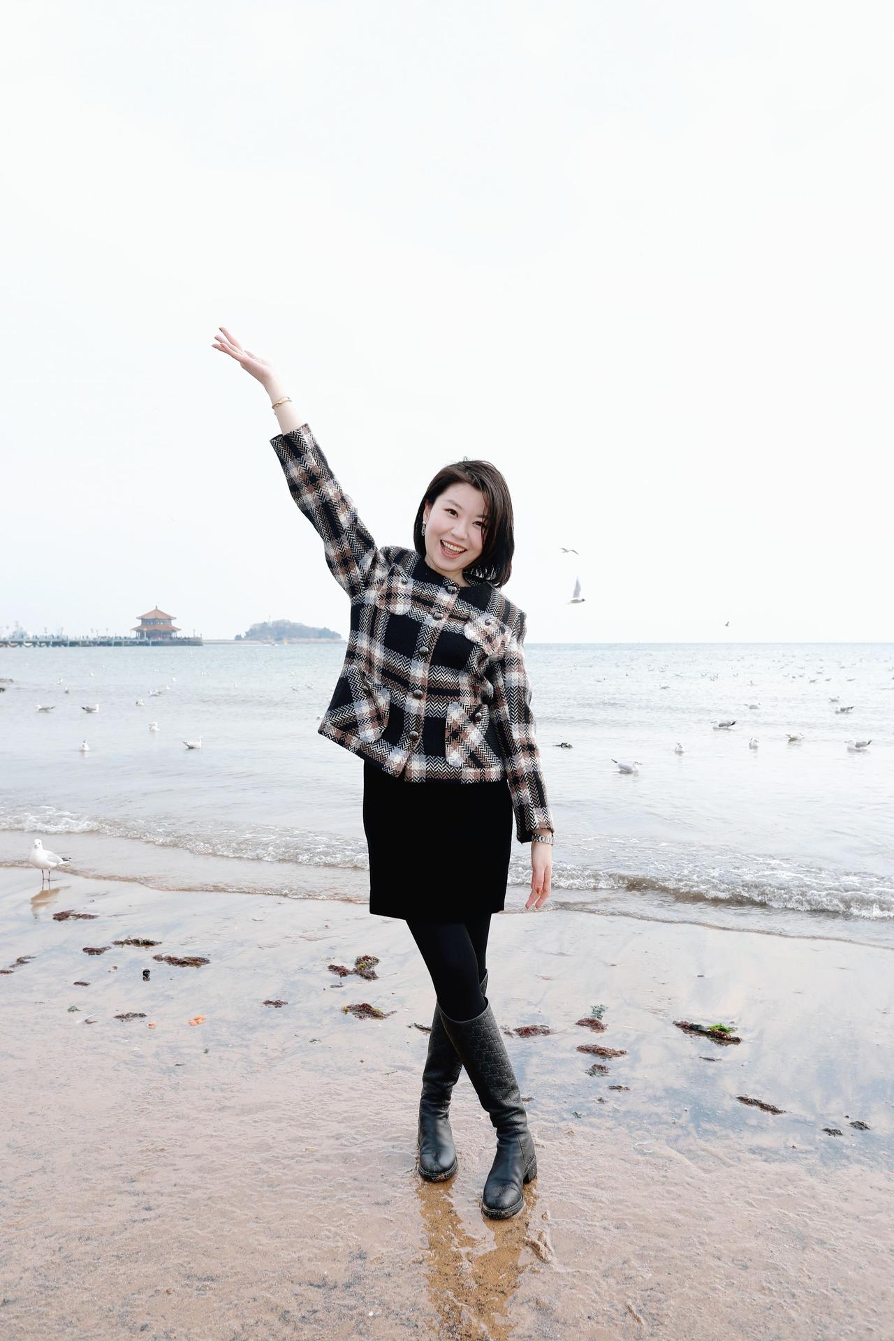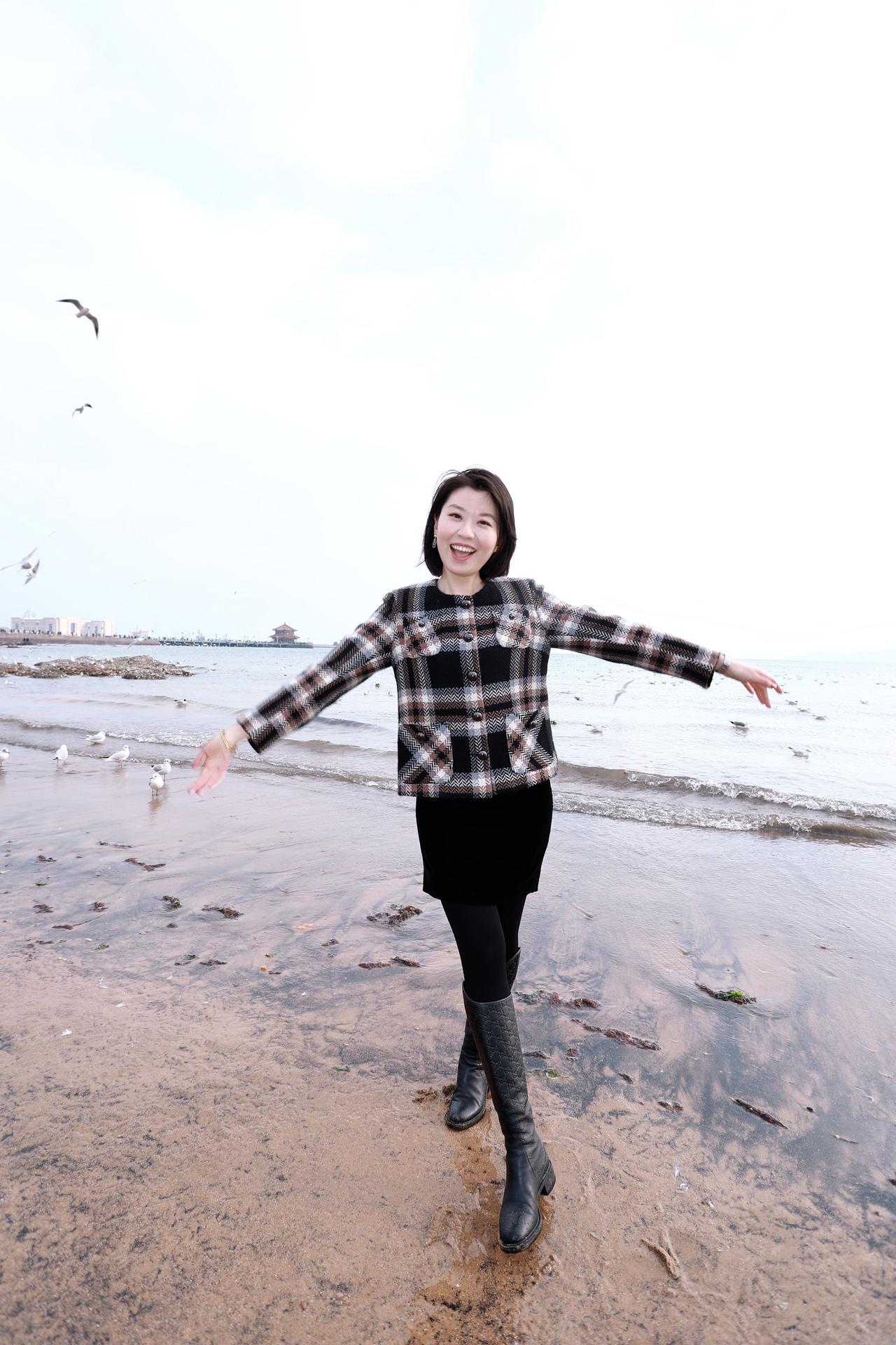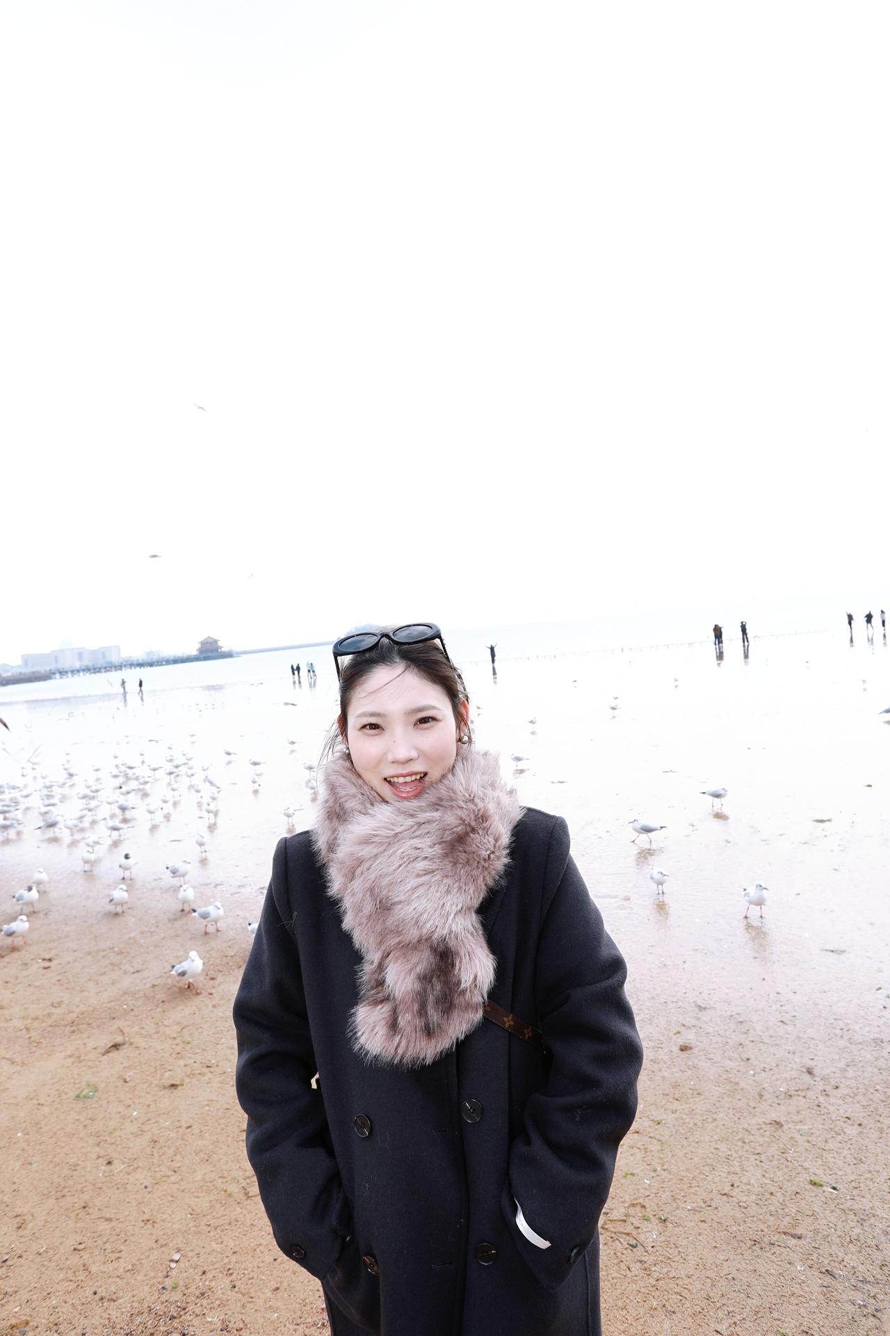 人像摄影约拍跟拍站在海边的你 我和大海同框了 青岛栈桥海鸥 我镜头里的美女原创原图直出照片