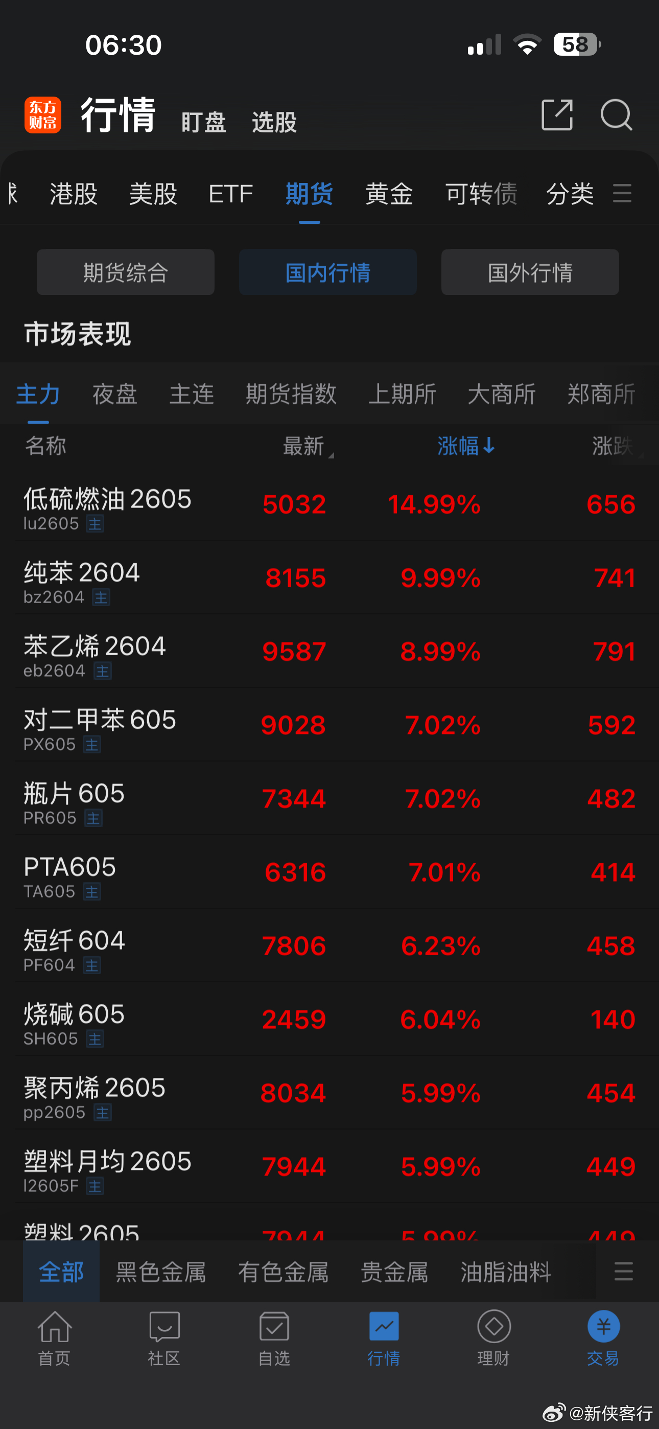 国际原油暴涨带动天然气,各类化工以及粮食等期货价格集体大涨!