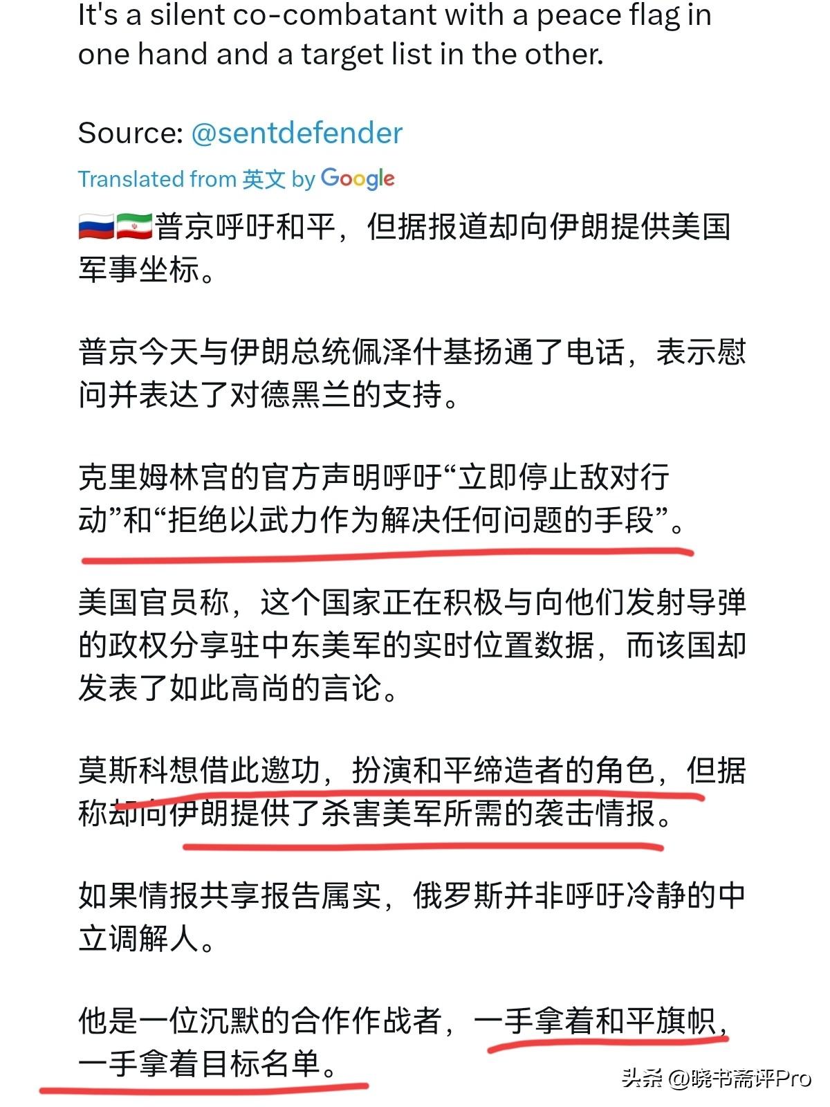 俄罗斯以美国的方式对付美国,搞的外媒很破防!3月7日,外媒点名俄罗斯声称,普京呼吁和平,但同时据报道向伊朗提供美国军事坐标,普京今天与伊朗总统佩泽什基安进行了交谈,对德黑兰表示哀悼和支持。克里姆林宫的官方声明呼吁“立即停止敌对行动”,“拒绝将武力作为解决任何问题的方法”。 莫斯科希望在扮演和平缔造者的同时,为什么向伊朗提供杀死美国军队所需的瞄准情报。如果情报共享报告是准确的,那么俄罗斯并不是呼吁冷静的中立调解人。这是一个沉默的共同战斗人员,一只手拿着和平旗,另一只手拿着目标清单。很显然,对于俄罗斯扮演的角色,外媒非常的破防。外媒的意思很清楚,俄罗斯不能一面喊和平,一面私底下帮助伊朗。 不过,作为旁观者来看,俄罗斯的这一招,事实上不过是以美国的方式对付美国。美国帮乌克兰,俄罗斯帮伊朗,美国嘴上高喊结束战争,武器弹药没停过,俄罗斯呼吁和平,也如法炮制美国的手段,就不知道外媒为什么如此心态不平衡?美国能够帮乌克兰捍卫领土与主权完整,俄罗斯就不能帮伊朗捍卫领土与主权完整吗? 很显然,俄罗斯可不是善茬,想搞只管州官放火,不许百姓点灯这一套,俄罗斯是不吃的。不得不说,还是俄罗斯更了解美国,更知道如何跟美国打交道。俄罗斯此举,美国肯定很头疼。如果俄罗斯情报足够的准确,弄不好伊朗会有意外的收获,到时候美国就非常的难堪了。