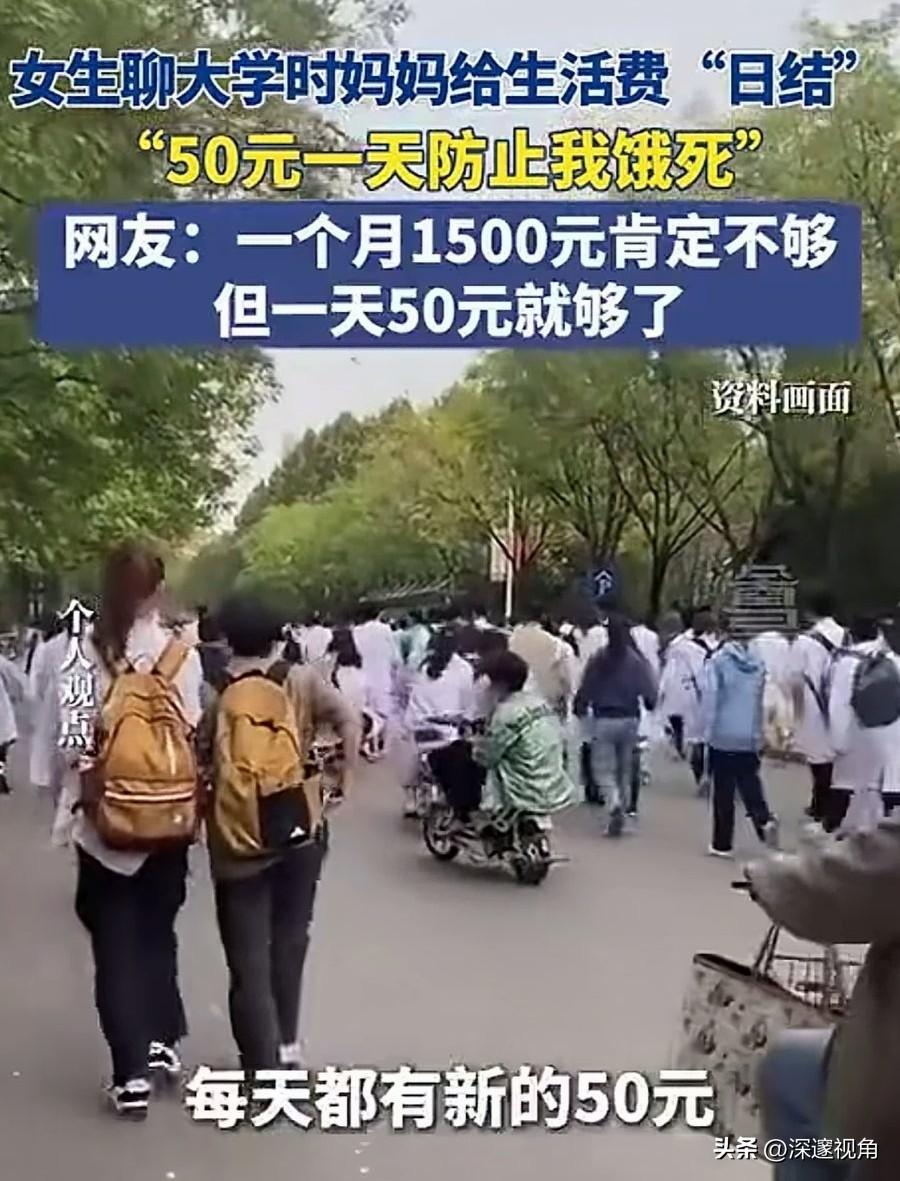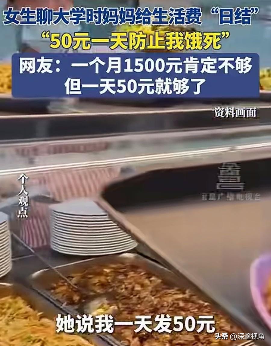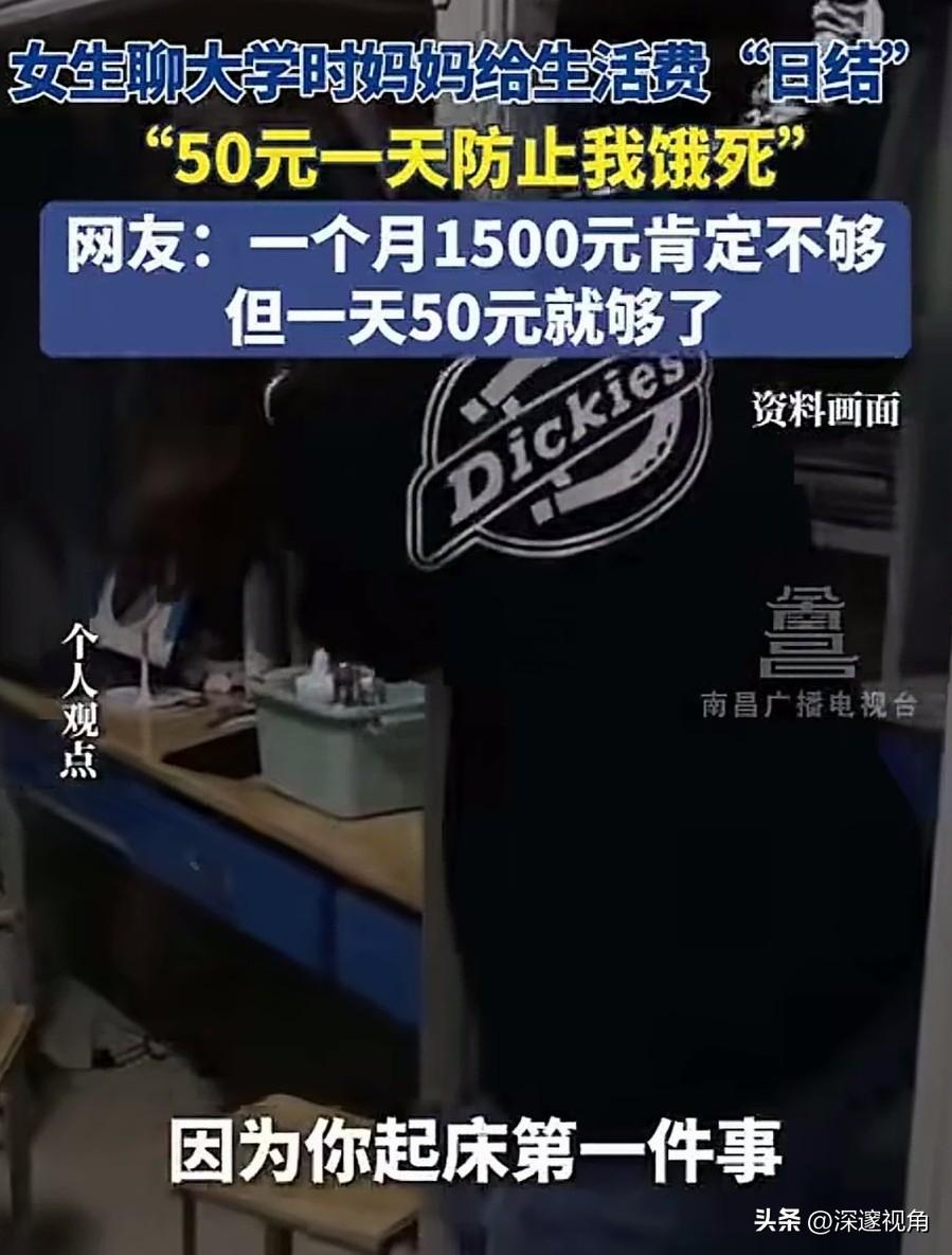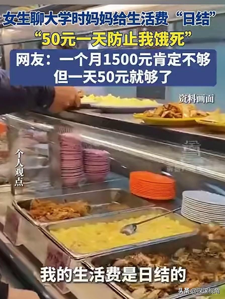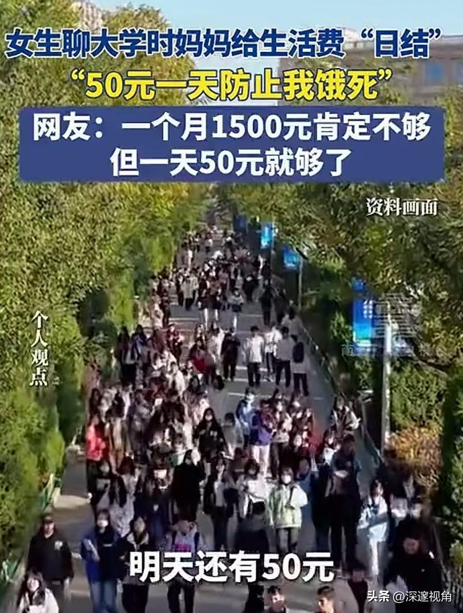 大学生生活费一个月1500元可能少了,但一天50元就够了。最近,一位女生分享大学时妈妈给生活费“日结”的经历,一天50块,不多不少,刚好够吃饭。有人说妈妈抠门,也有人说这是最聪明的爱。 在很多人的印象里,大学生活费都是按月结算,少则一千多,多则好几千。但这位妈妈偏不,她把生活费拆成了“日结”,每天早上准时给女儿转50块,还开玩笑说“防止我饿死”。女儿也坦言,自己起床第一件事就是收红包,顺便和妈妈聊两句,母女俩的感情反而因为这每天的转账变得更亲密。 网友的评论很有意思:“一个月1500肯定不够,但一天50就够了。”这句话戳中了很多人的痛点。当钱以“月”为单位时,我们很容易大手大脚,月初潇洒,月底吃土;但当钱变成“日结”,每一笔消费都变得清晰可见,反而能让人学会克制和规划。 这位妈妈的做法,本质上是用一种温柔的方式,教会女儿如何与金钱相处。她没有剥夺女儿的自由,而是用“日结”的规则,帮女儿建立起最朴素的消费观:钱是有限的,要花在刀刃上;生活是自己的,要学会对自己负责。 在这个消费主义盛行的时代,我们太容易被“精致生活”“超前消费”裹挟。大学生们拿着父母的血汗钱,跟风买名牌、追潮流,月底陷入网贷泥潭的新闻屡见不鲜。相比之下,这位妈妈的“50元日结”,像一股清流,提醒我们:真正的爱,不是无底线的满足,而是帮孩子建立起抵御风险的能力。 有人说,一天50块太少了,现在物价这么高,根本不够花。但仔细想想,大学食堂的饭菜大多物美价廉,一天三顿控制在30-40元完全可行。剩下的钱,还能买瓶水、买个水果,或者存起来买自己喜欢的小东西。这种“刚刚好”的状态,反而能让人更专注于学习和成长,而不是被物质欲望牵着走。 其实,家庭教育从来都不是惊天动地的大事,而是藏在这些细碎的日常里。这位妈妈用最朴素的方式,给女儿上了一堂生动的财商课和人生课。她没有教女儿如何赚大钱,却教会了女儿如何规划生活、如何珍惜拥有。