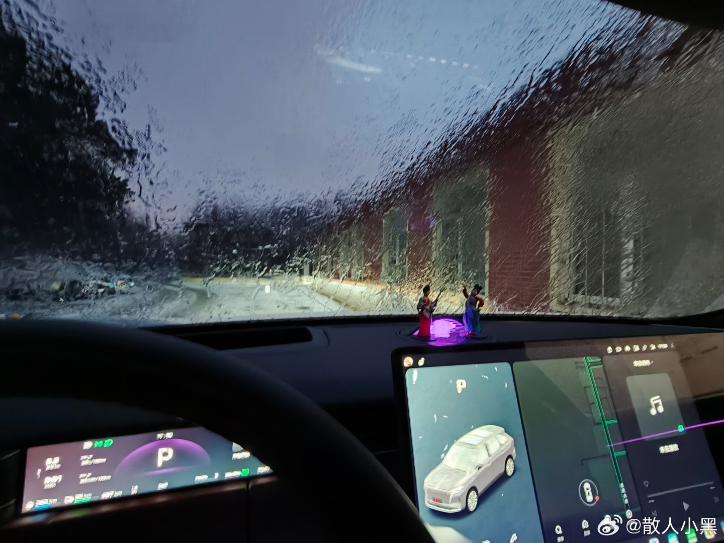 红旗还是有细节的外边小雪车身都结冰了车机的动画居然能同步上,可以可以新能源大牛说