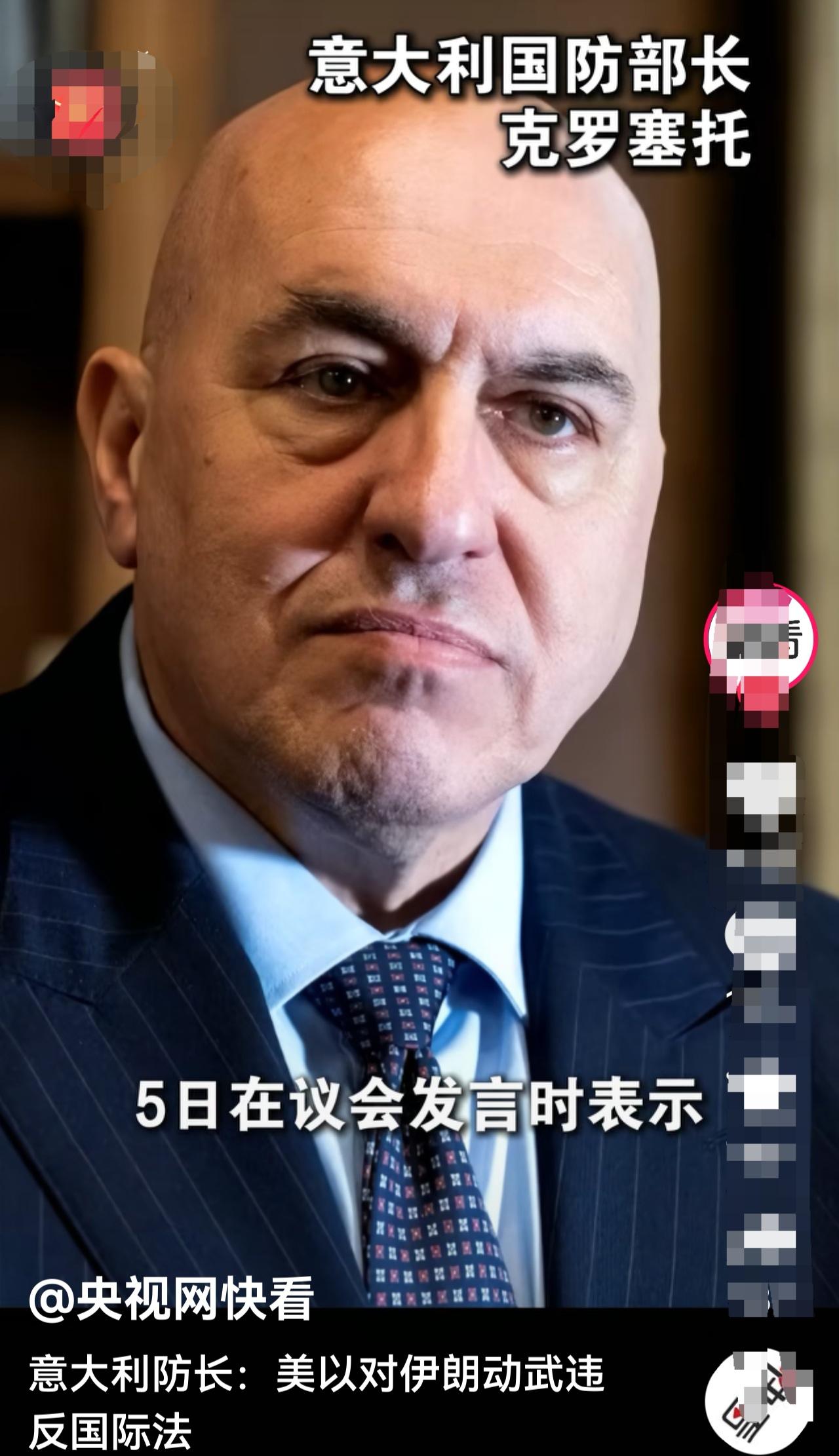 意大利终于正式表态,国防部长在议会接受质询时说,美以对伊朗的军事打击,违反国际法,在全世界毫不知情的情况下,对一个主权国家发动战争是反对的。 虽然意大利总理梅洛尼是特朗普的小迷妹,没有见到她的表态,但社会现实也让意大利这个盟友不得不说反对。 因为紧跟美国发动战争,摇旗呐喊,得到的是国内局势不稳,民众抗议,尤其是意大利本身就在中东链接的敏感部位,一些移民蜂拥而至让他们领略到了什么是无奈,接收了,没能力,不接收,受谴责,支持战争,国内的伊斯兰民众会成为内爆的力量。