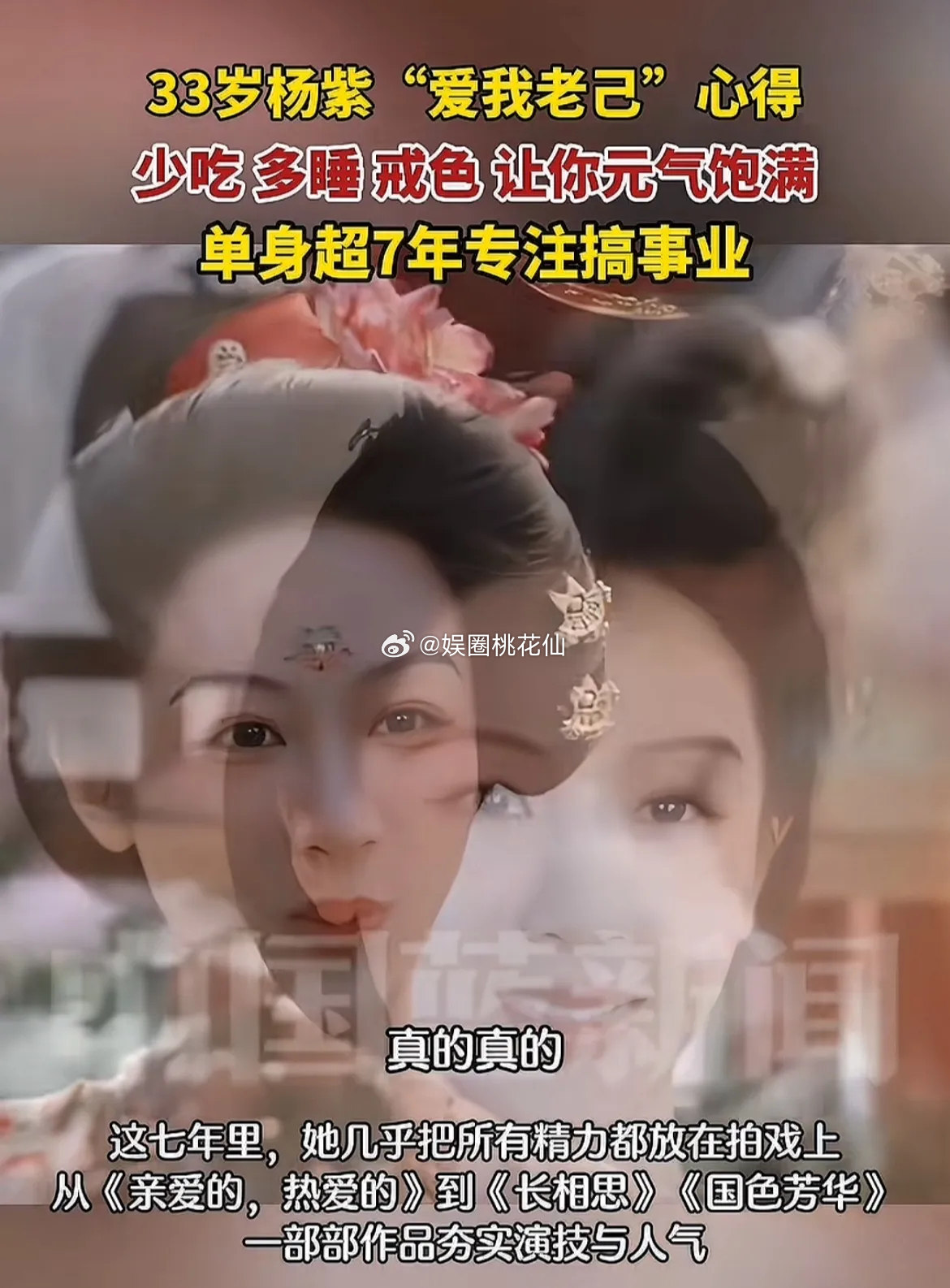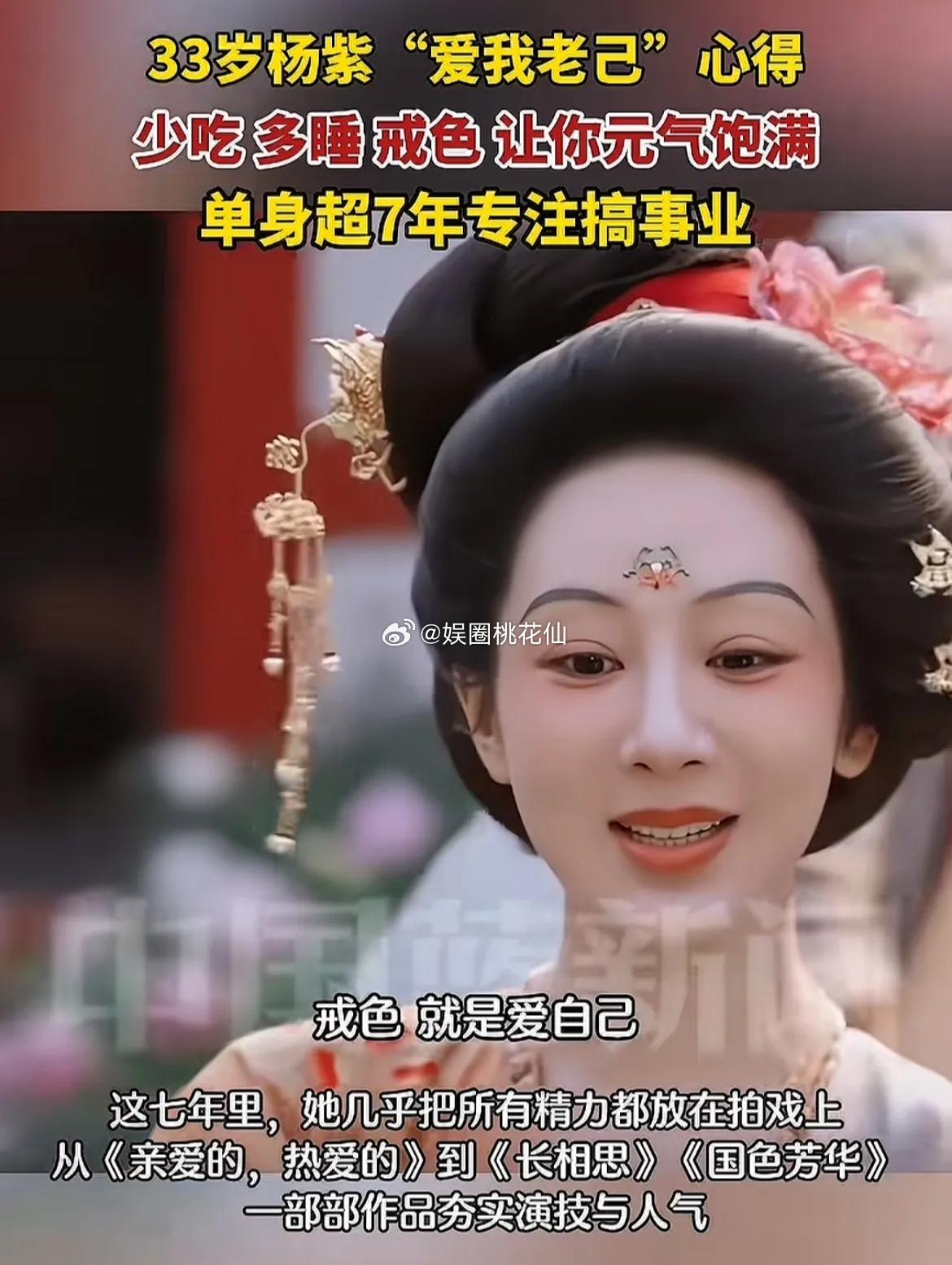 杨紫说:“爱自己,少吃多睡觉,戒色就是爱自己。真的,我不骗你们,就是会让你这个元气很饱满。”!