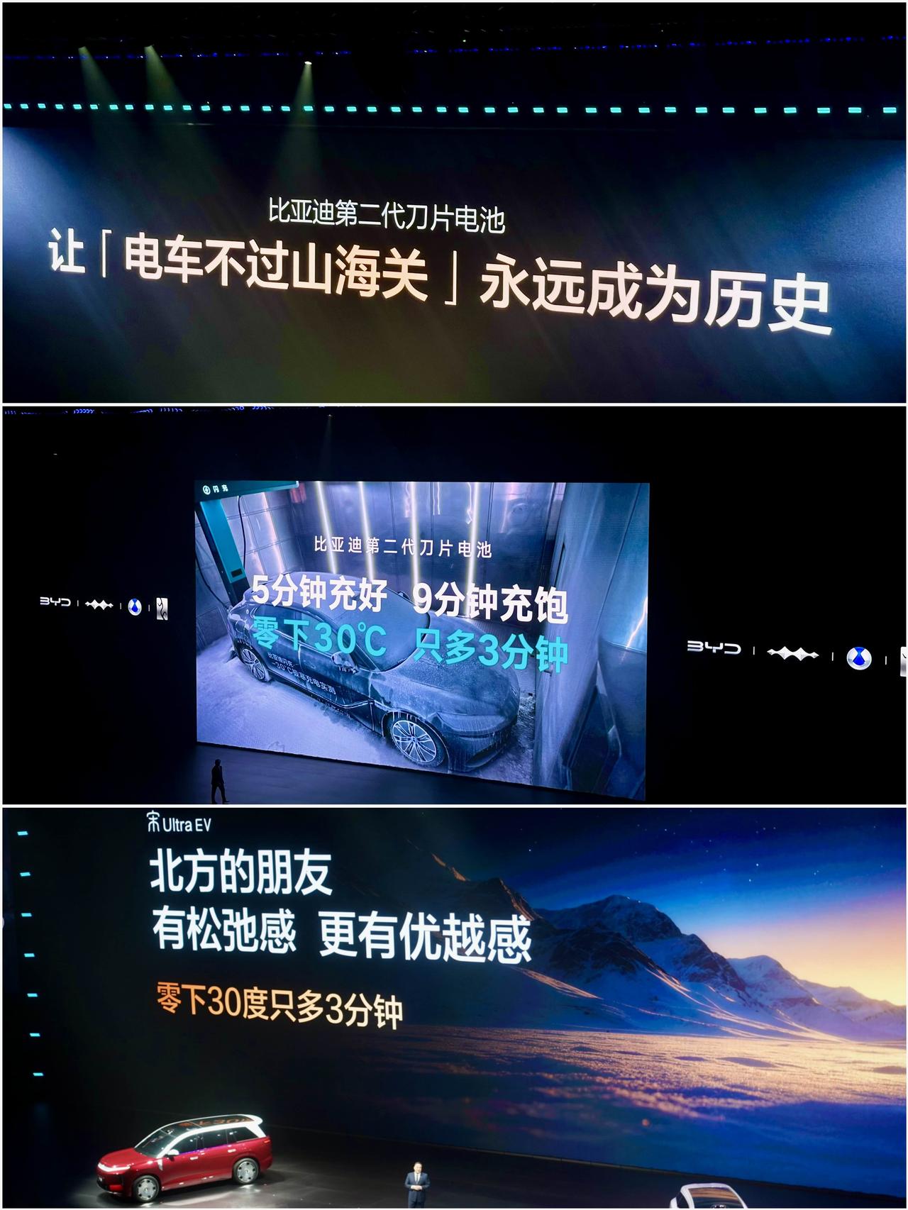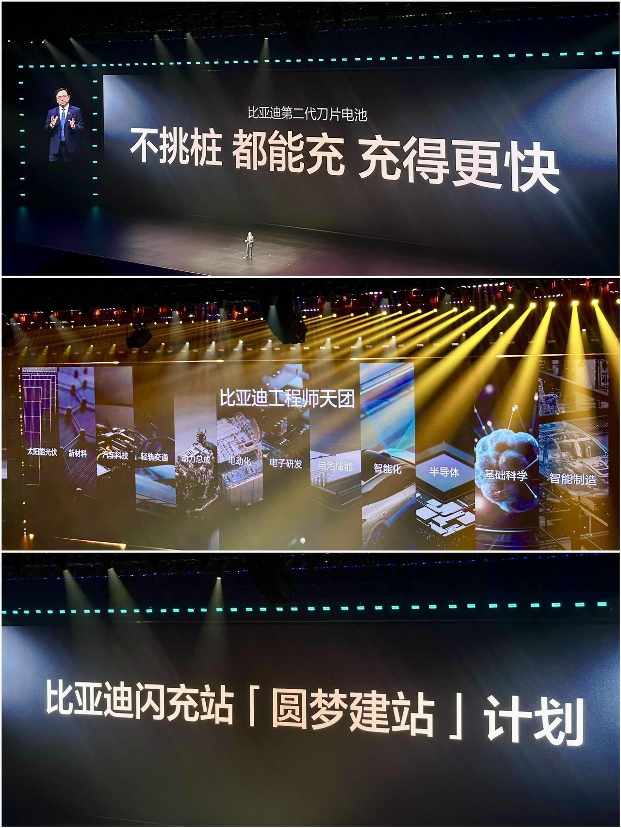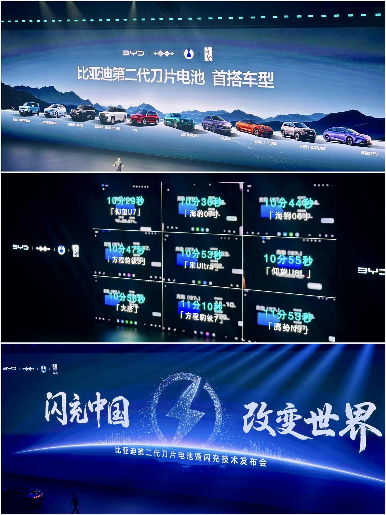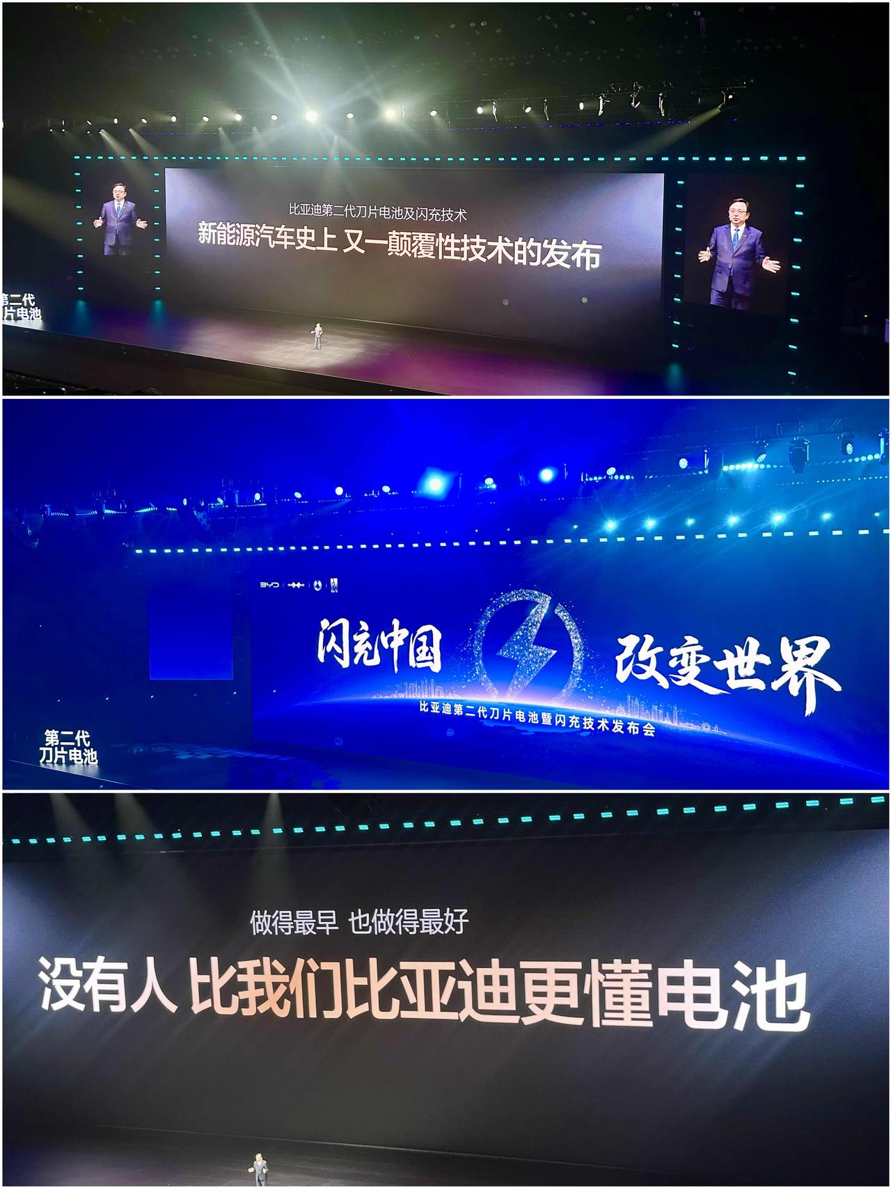 受邀从北京来到深圳大运中心现场,参加比亚迪第二代刀片电池发布会,看的热血沸腾!总裁王传福宣布颠覆性技术,硬核科技的闪充,5分钟充好,9分钟充饱,零下30度只多3分钟!上个厕所,喝杯咖啡或是小憩一会的时间就可以完成,效率翻倍。以后“电车不过山海关”,不再是北方寒冬的瓶颈,太快太牛了! 配套闪充桩吸睛又超好用,枪身轻便女生也操作友好,即插即充。年底闪充全国计划要建20000座闪充站,遍布范围广泛,其他牌也可用,迅速补能再也不用担心电量焦虑。还能一年享受免费闪充等重磅权益, 用一组数字重新定义闪充:5分好、9分饱、3分寒!跑得欢、充得快;时间少一点、美好多一点。闪充中国,改变世界,亲眼见证全力加速的新能源时代,中国技术引领世界的趋势,即刻开启。 你会选择比亚迪闪充还是蔚来换电