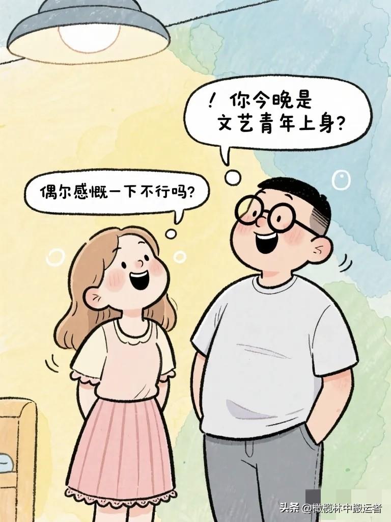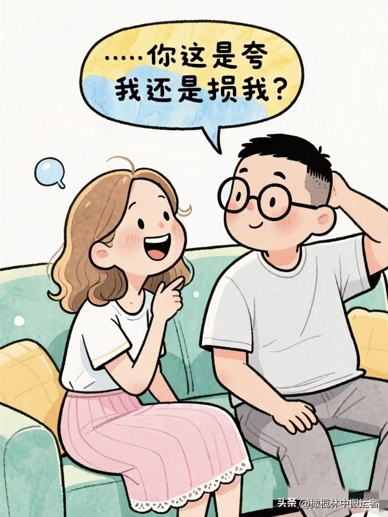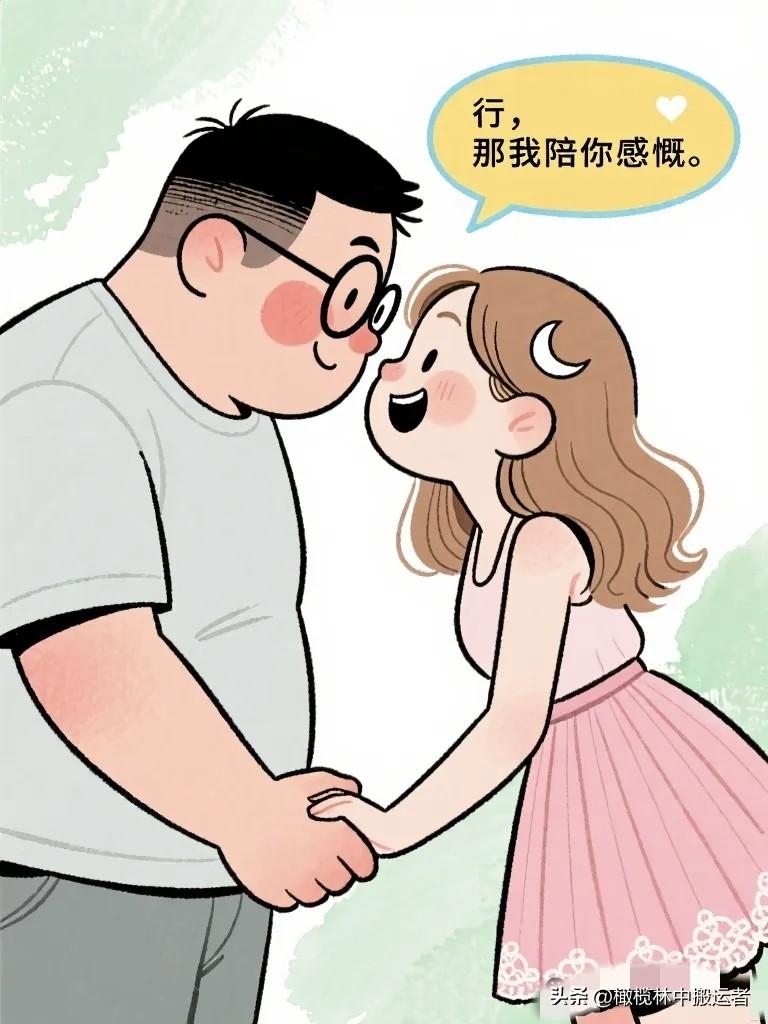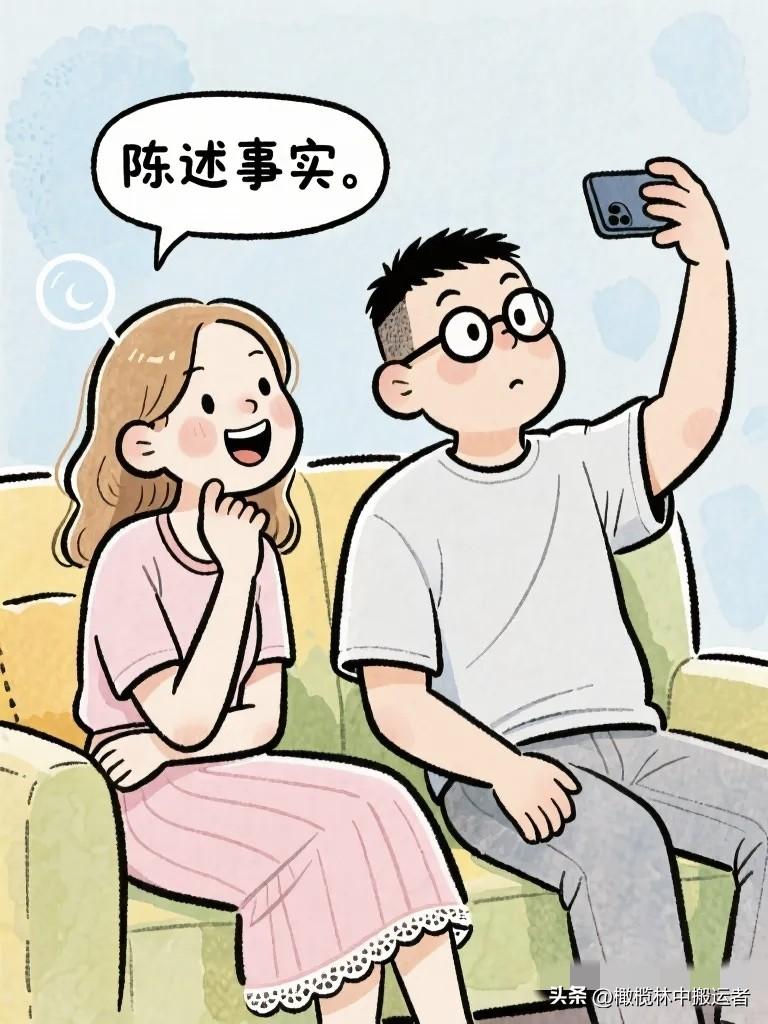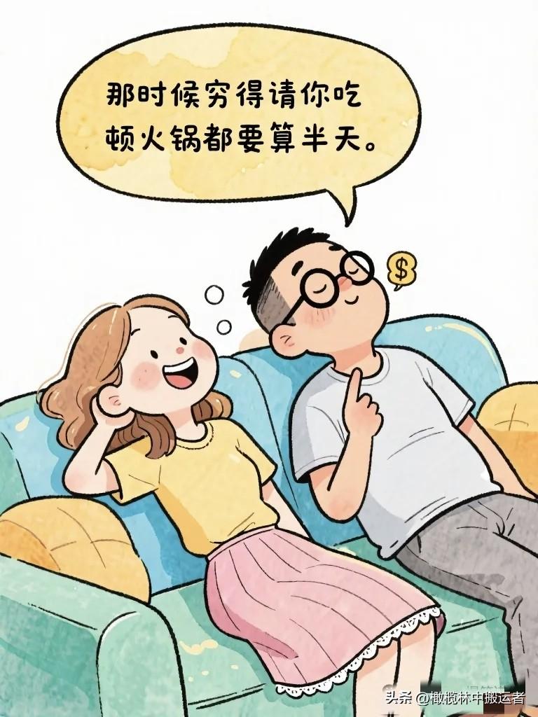搞笑漫画:夫妻窝在沙发上看相册。 妻子:"你看,这是我们刚认识的时候。" 丈夫:"那时候你头发好长。" 妻子:"你那时候好瘦。"