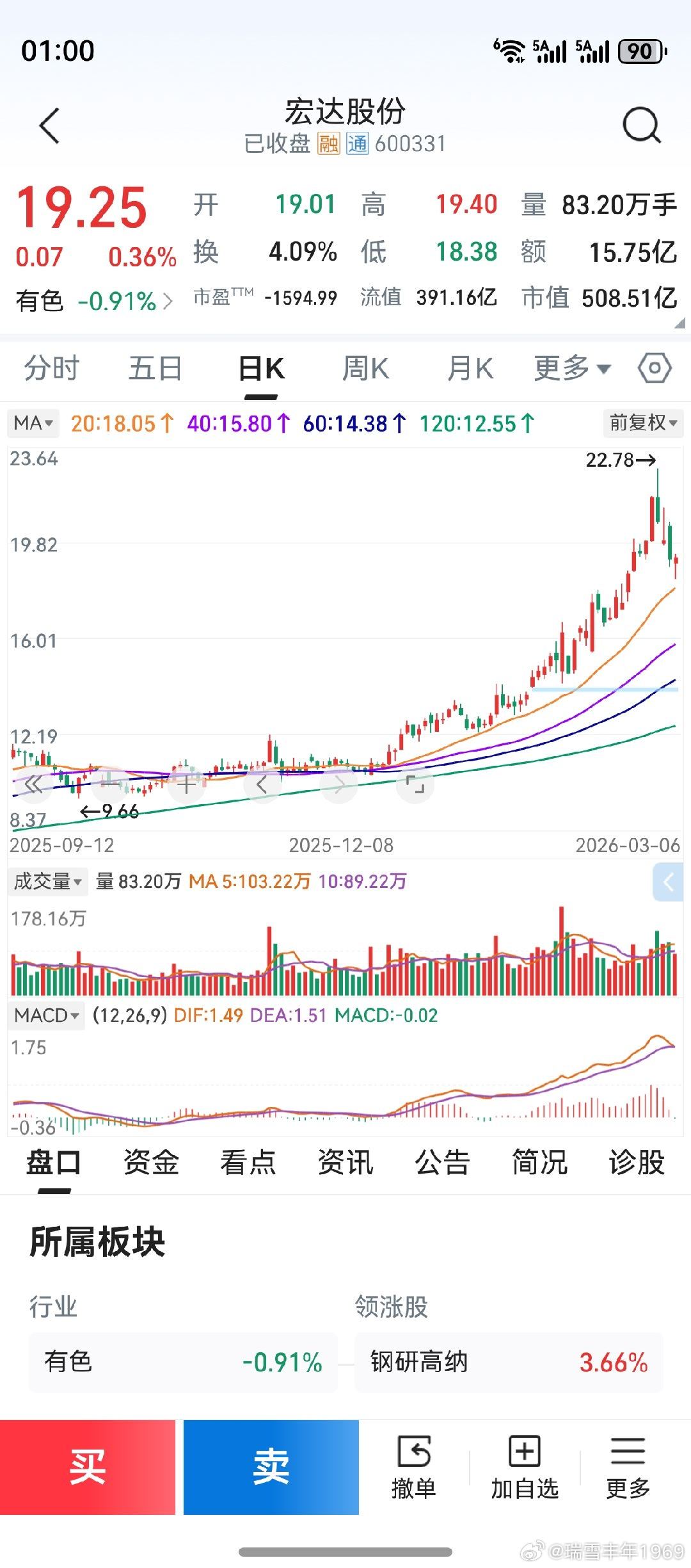 有v+群朋友问起,宏达股份周五macd第一根绿柱,能否构成买点?今年1月的时候,中期均线刚形成三线平行的雏形。k线回调至20天线附近,macd第一根绿柱事实证明构成了最佳狙击点。现在股价已有一定涨幅,今非昔比。如果要尝试,应关注下周一分时走势。强势可作小部分投机,弱势则肯定放弃。个人观点,且操作难度大,绝对不作荐股!