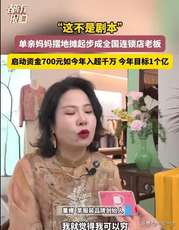“这不是剧本!”河南郑州,女子离了婚,带着孩子,揣着700元,就开始了摆摊之路,从700元到几千万的收入,她做到了,其中的心酸,只有她一个人知道,她只说了一句话:“我可以吃苦,我可以穷,但我的孩子不可以!”就这么一句话,她创造了奇迹。 2025年,董娜的收入就有几千万,她看到自己的成就,她内心感到无比的自豪,从700元到几千万的收入,董娜从来没有想过,自己能做到这个地步,可她实实在在地做到了。 到底她是怎么能做到的,她的成功秘诀又是什么?董娜不由自主地又回想起了自己的创业之路。 2012年,董娜离了婚之后,她身上只有700元,她还要带着孩子生活。 区区几百元,她和孩子都要吃喝,都要生活,她带着孩子又无法找一份体面的工作,带着孩子,想要好好地生活下去,那只有一条路,那就是去摆摊,一边照顾孩子,一边做小生意,这是她唯一能走的路。 为了养活自己和孩子,董娜开始了自己的摆摊之路,她拿着700元去进了一批货,开始了自己起早摸黑的摆摊生活。 好在那时,摆摊生意还不错,只要能够吃苦耐劳,生意就不错,还不至于吃了上顿没下顿。 靠着700元摆摊,她成功地养活了自己和孩子。 摆摊了一段时间,董娜慢慢懂得生意之道,要把生意做大,挣更多的钱,那就得开店。 摆摊,风吹日晒,本就辛苦,开个小店,有个遮风挡雨的地方,也能挣更多的钱。 她开了一间20多平方米的服装小店,为了生活,她从此更拼了,她每天一大早就得去进货,回来之后烫衣服,挂衣服,卖衣服,忙忙碌碌一天。 等到了晚上,小店一关门,她还不能休息,还得拿着衣服到外面去摆摊,一摆就摆到深夜。 这样的生活状态,她维持了很长一段时间,每天都只睡三四个小时,她真的是拼了命地去工作。 那时她也会经常累得哭了起来,可是哭没有用,她看着身边的孩子,就心里暗暗发誓,今日她所吃的苦,所受的累,不能让自己的孩子再经历,她可以穷,可以吃苦,但她的孩子不可以,她要让孩子过得好,她要向他人证明一切。 她默默地承受了所有的苦,所有的累,这是她的来时路,苦并快乐着。 有了这段经历,她不断地积累了经验,终于寻找了一条合适自己的路,那就是创立品牌新中式潮流服饰。 她凭着自己的市场敏锐力,大胆地开始制造新中式服饰,由于质量好,款式新,正好新中式又流行,她的生意越做越大,收入越来越高。 2025年她就创造了几千万的收入。 以前她从来没有想过,自己能做到这一步,但今天她做到了,她笑着跟别人说,今年她有一个小目标,那就是创造1亿的收入。 她终于不再让自己吃苦了,她终于有底气地说,不让孩子吃苦了。 那时她仅仅只是想着养活孩子,凭着为母则刚的韧劲,她努力生活,寻找合适自己的生存之道。 正是她对孩子的那份责任心,成就了她。 对于董娜来说,她不过是履行抚养孩子的义务。 《民法典》第1067条规定:父母不履行抚养义务的,未成年子女或者不能独立生活的成年子女,有要求父母给付抚养费的权利。 只是不忍孩子跟着她吃苦,她一路拼搏,拥有了今天的成就。 那么你对这样的女强人有何看法?