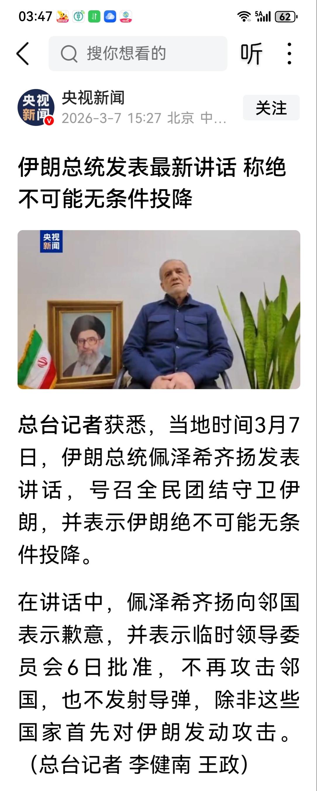 伊朗一方面向邻国致歉,另一方面又袭击邻国。有两个原因,一是美以斩首伊朗高层后,政令军令不畅,各地自行其事,自行决定打去对象。二是伊朗有两派,强硬派主张不仅要大打,而且把邻国一起打。另一派主张主要对付美以,与邻国和平相处。两派谁也不站上风,谁也说服不了谁。
