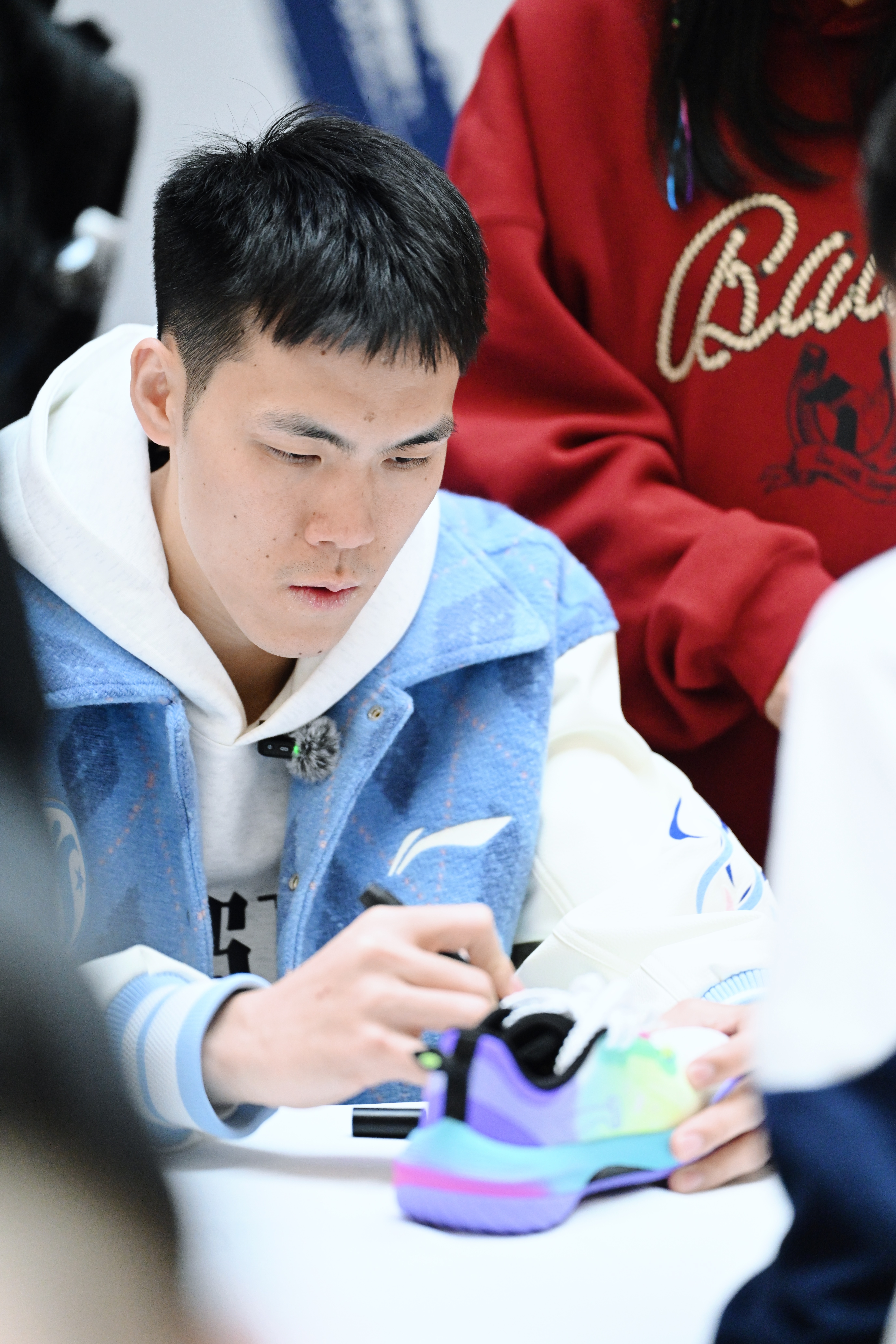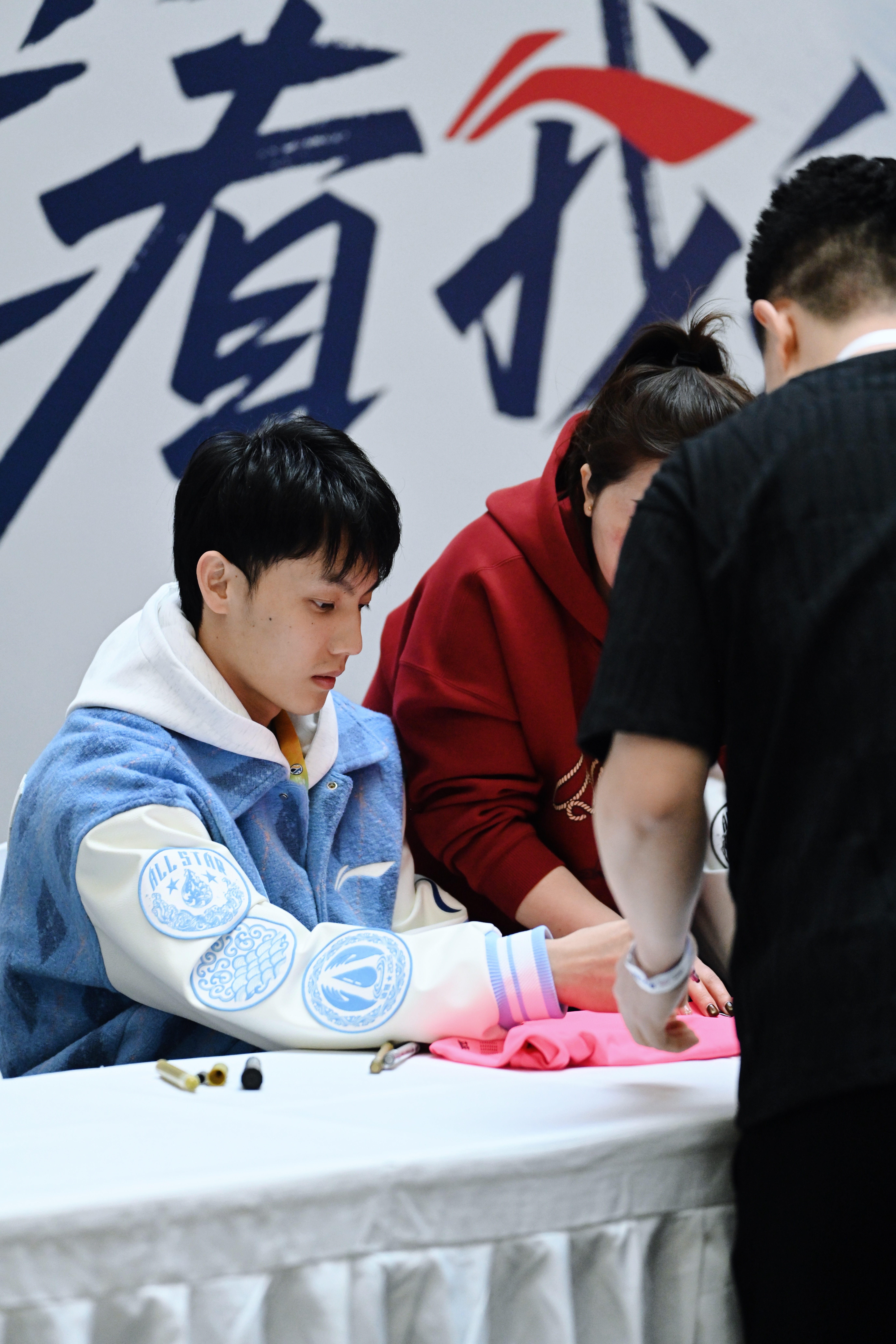 李宁签约的CBA全明星球员曾凡博、徐杰、齐麟、庞峥麟、迪亚洛来到球迷见面会,做游戏+领奖品+排队签名,场内所有球迷基本都签上了我看