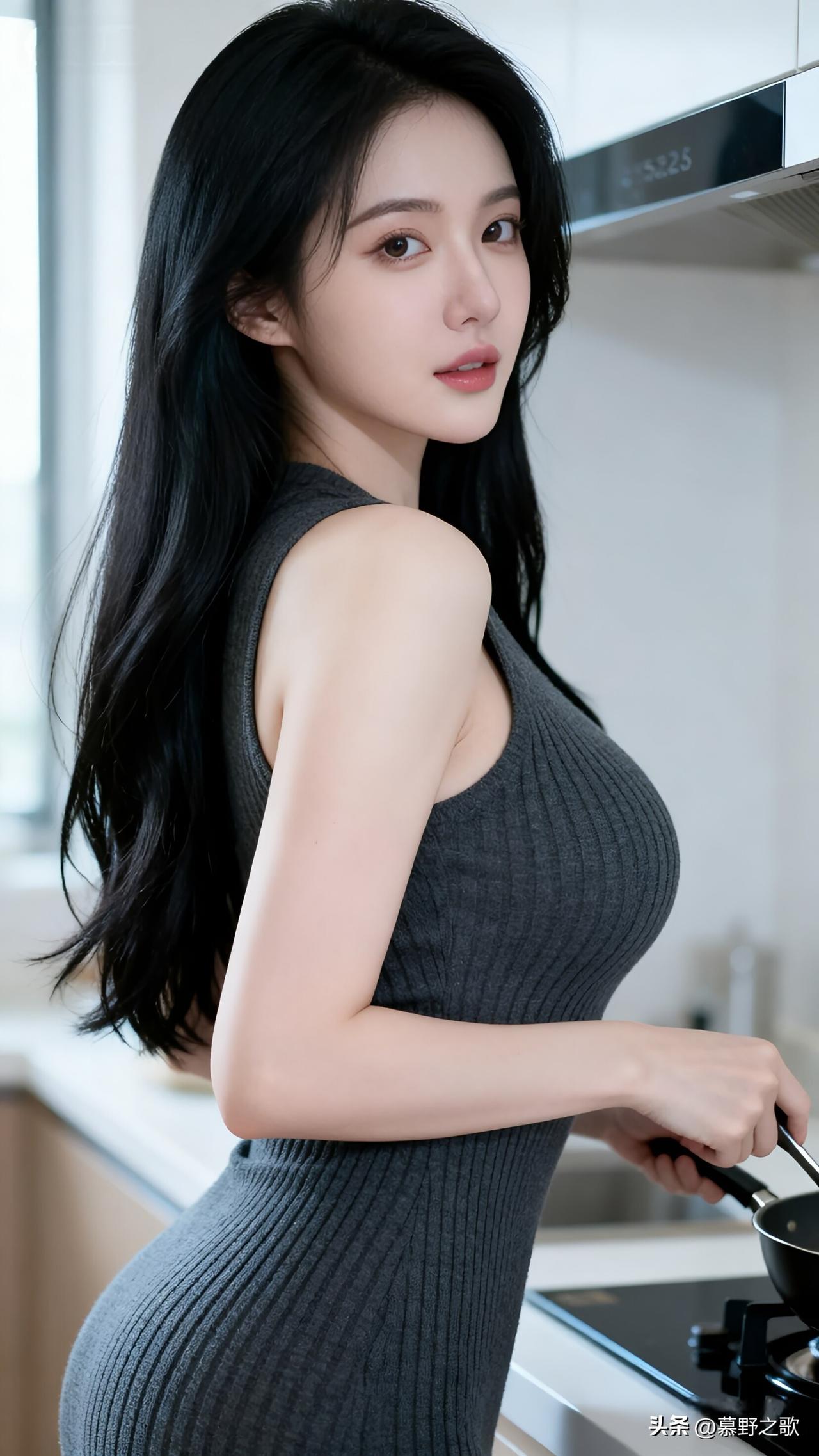 谁能拒绝在厨房也这么有魅力的女生! 黑色紧身针织衫,完美展现曲线。 一手拿着锅铲,又美又飒。 背景是整洁的厨房,却挡不住她的气场。 这种反差感,真的太迷人了。 说实话,会做饭又好看的女生谁不爱啊! 你们喜欢会做饭的女生吗? 厨房穿搭 辣妹风 女生做饭 居家拍照