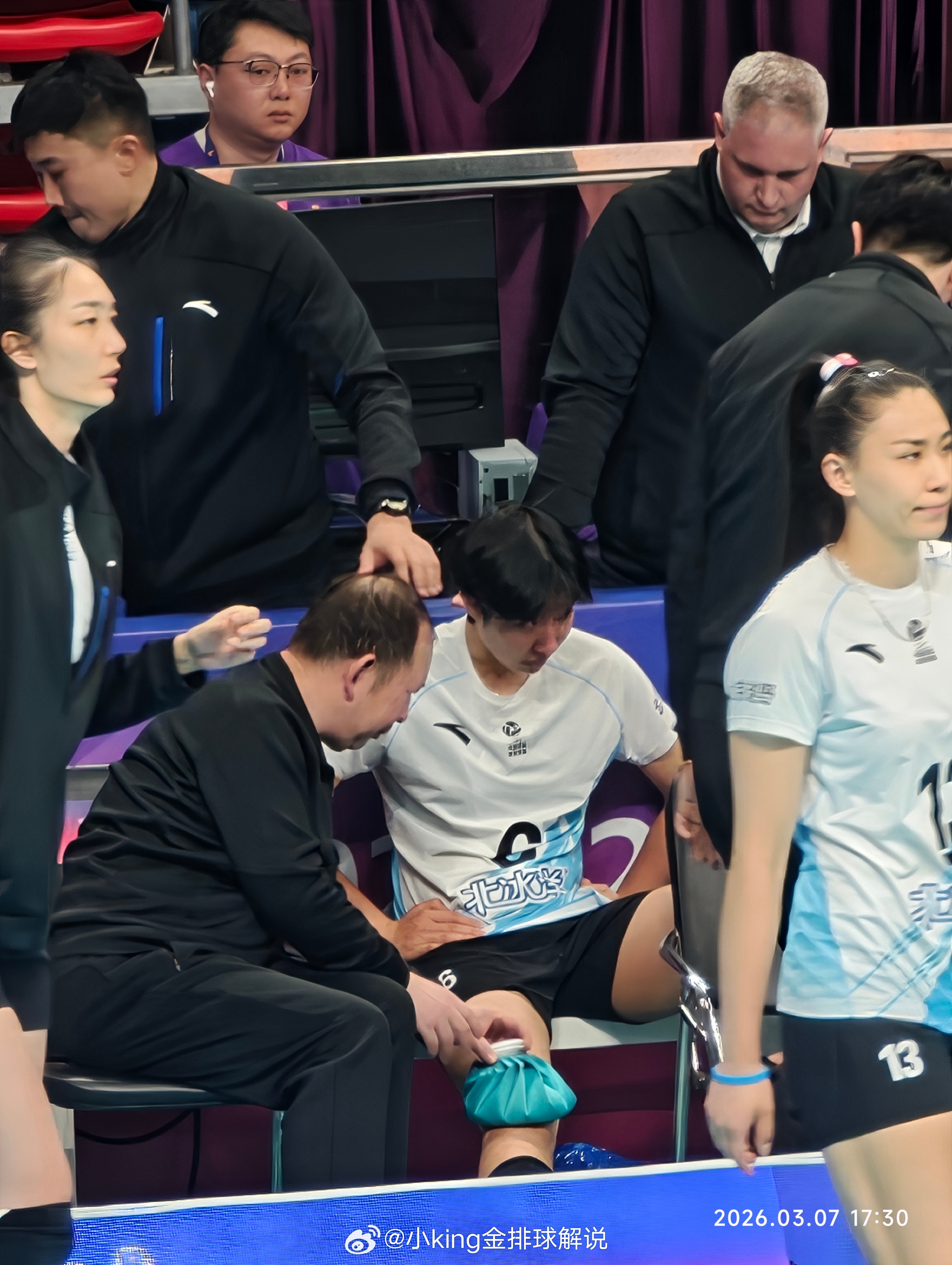 张籽萱开场因为疑似手指受伤,被换下。中国女排
