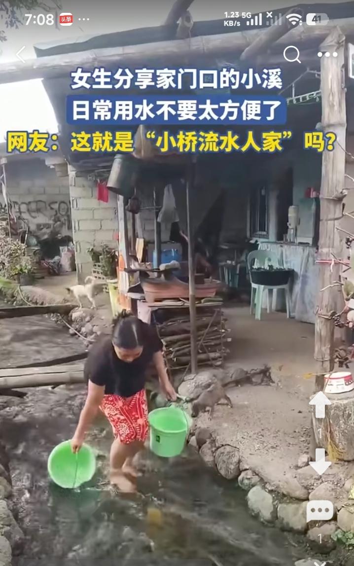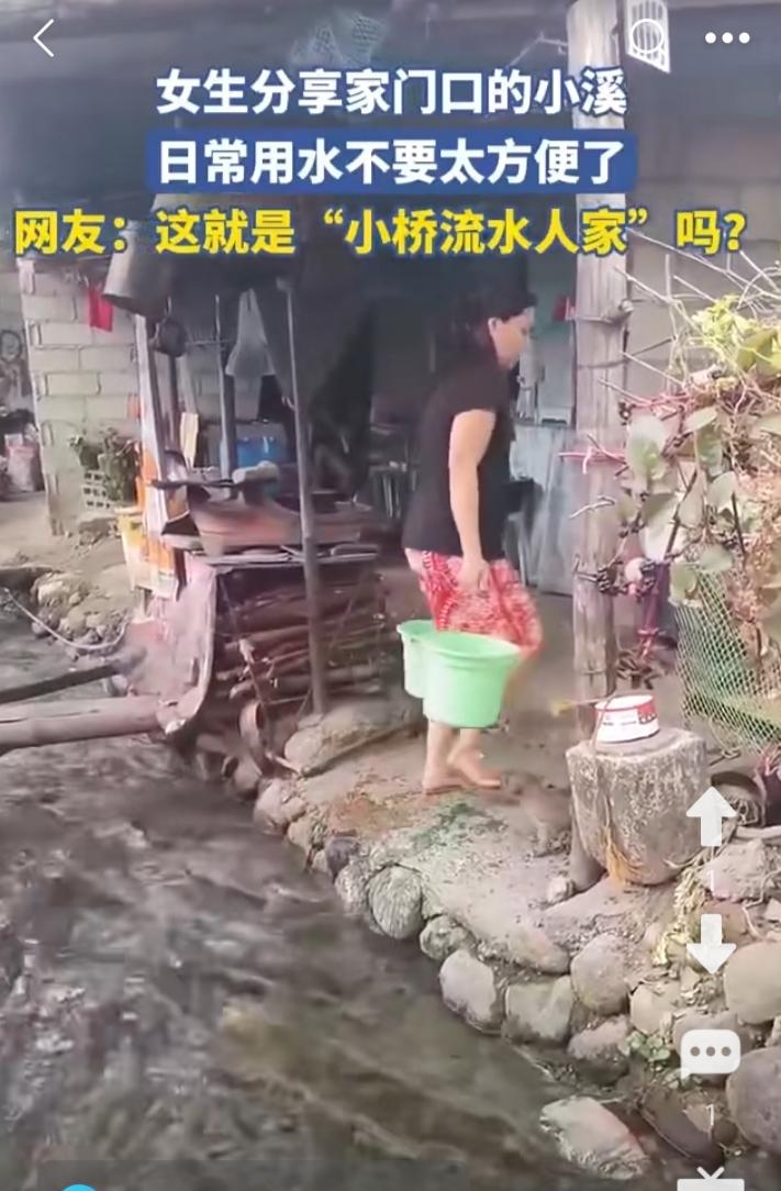 小桥流水,叮咚泉听。 屋前小溪流水潺潺,村姑出门打水。 这是多么充满诗意的乡居,我就羡慕这样的人家。 其实,生活不一定要灯红酒绿,夜晚静卧,听着门外涓涓细流,心情自然安㴵。蒂听着那天籁之声,比什么都好。 这样的生活,应该是超级享受。