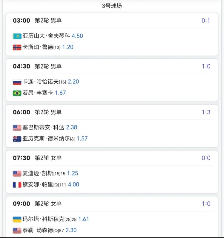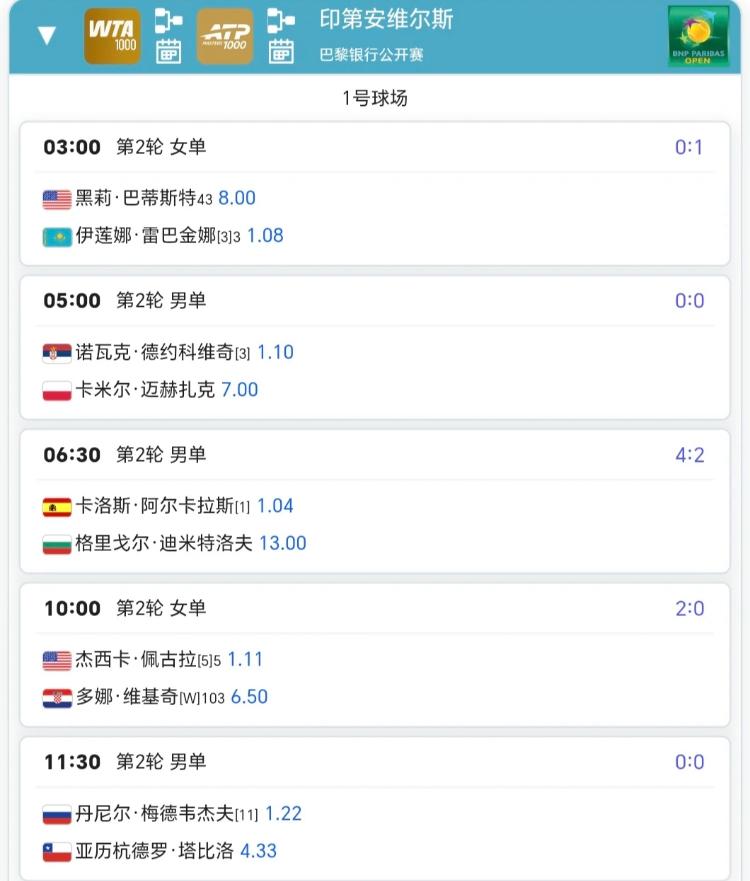 千呼万唤🔥 3月8日7:00郑钦文将登场!! 网友:那怕半夜3:00也会爬起来看!!哈哈,你是不是也跟这个网友一样呢?明天除了郑钦文,莱巴金娜、德约科维奇、阿尔卡拉斯、梅德韦杰夫、弗里茨、斯瓦泰克、佩古拉、安德列娃等等都将出场,具体场次时间如下图⏬⏬印第安维尔斯