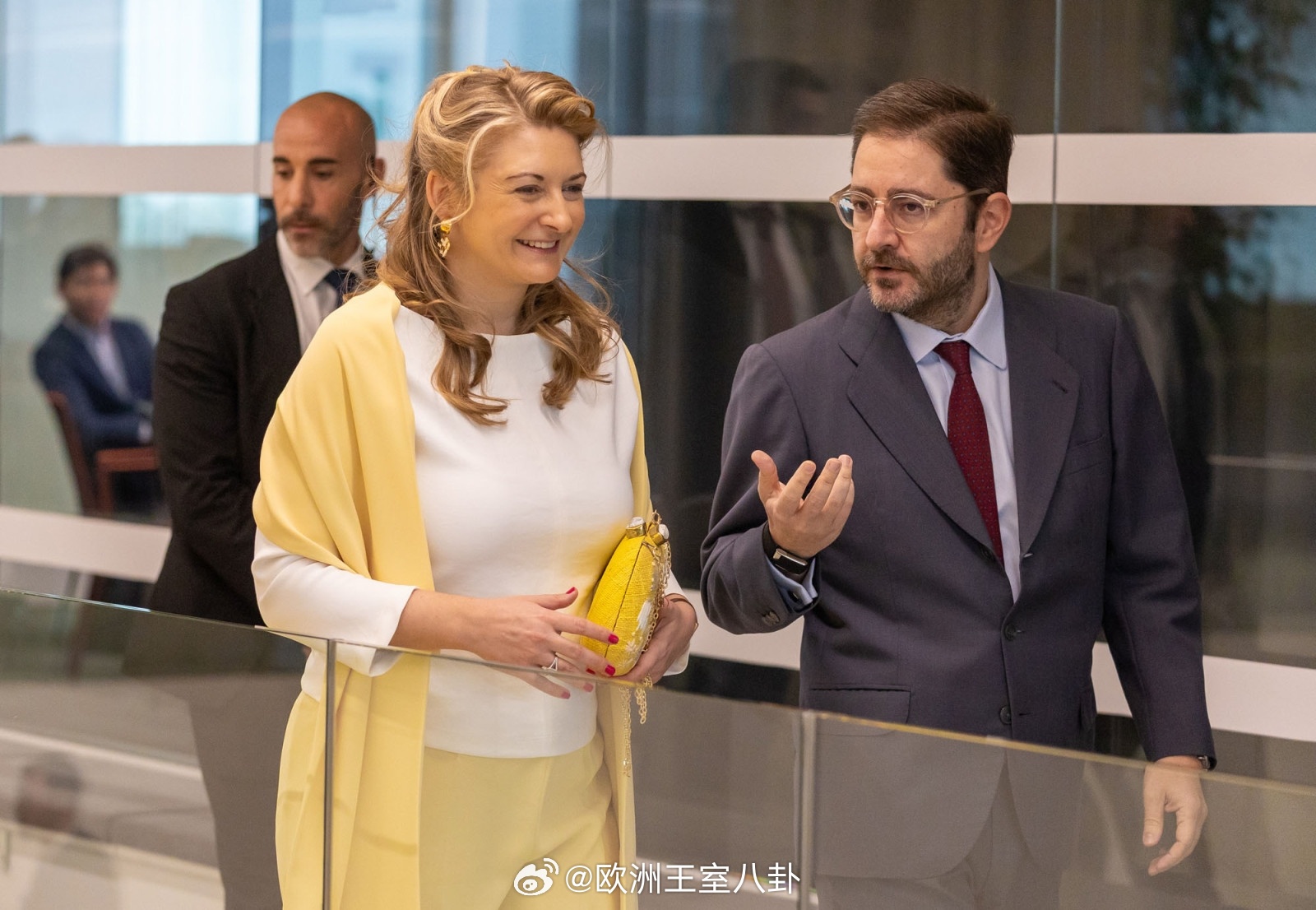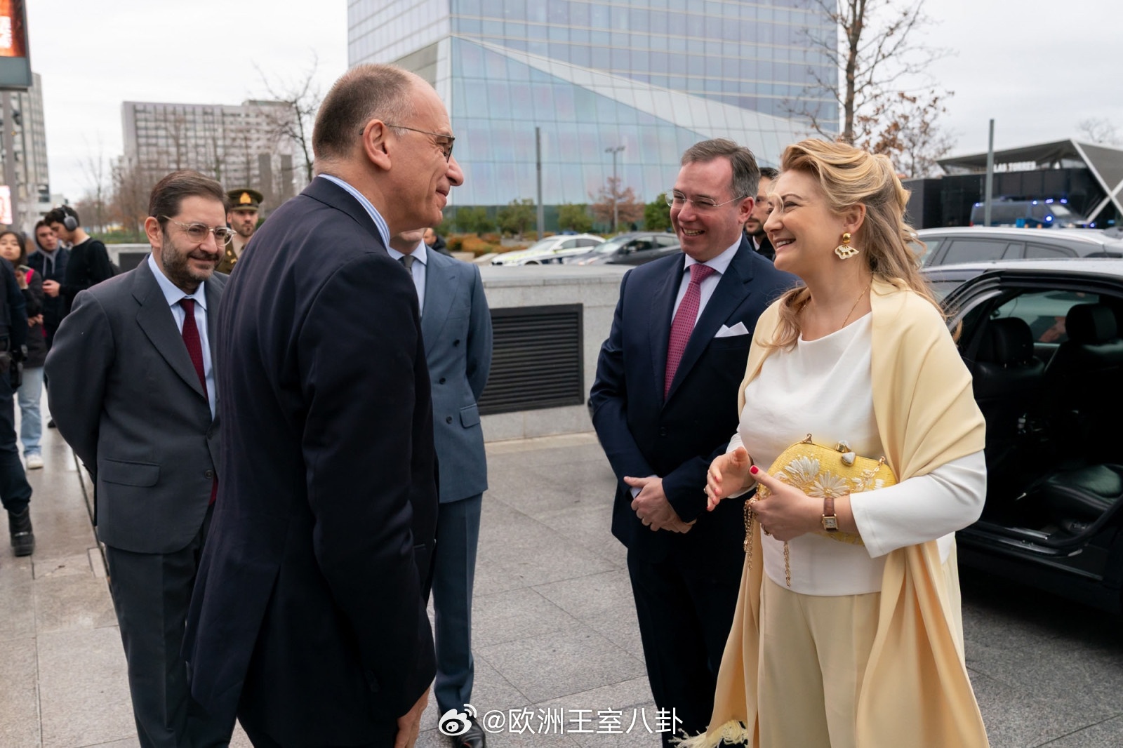 昨天卢森堡大公纪尧姆和大公夫人斯蒂芬妮在西班牙补点图,夜间他们去的使馆接待会俩感