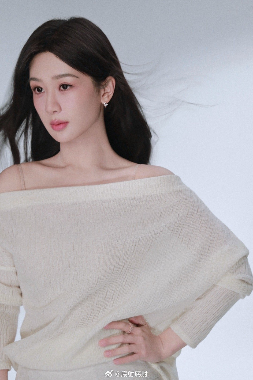 景甜渐变蓝色礼服写真