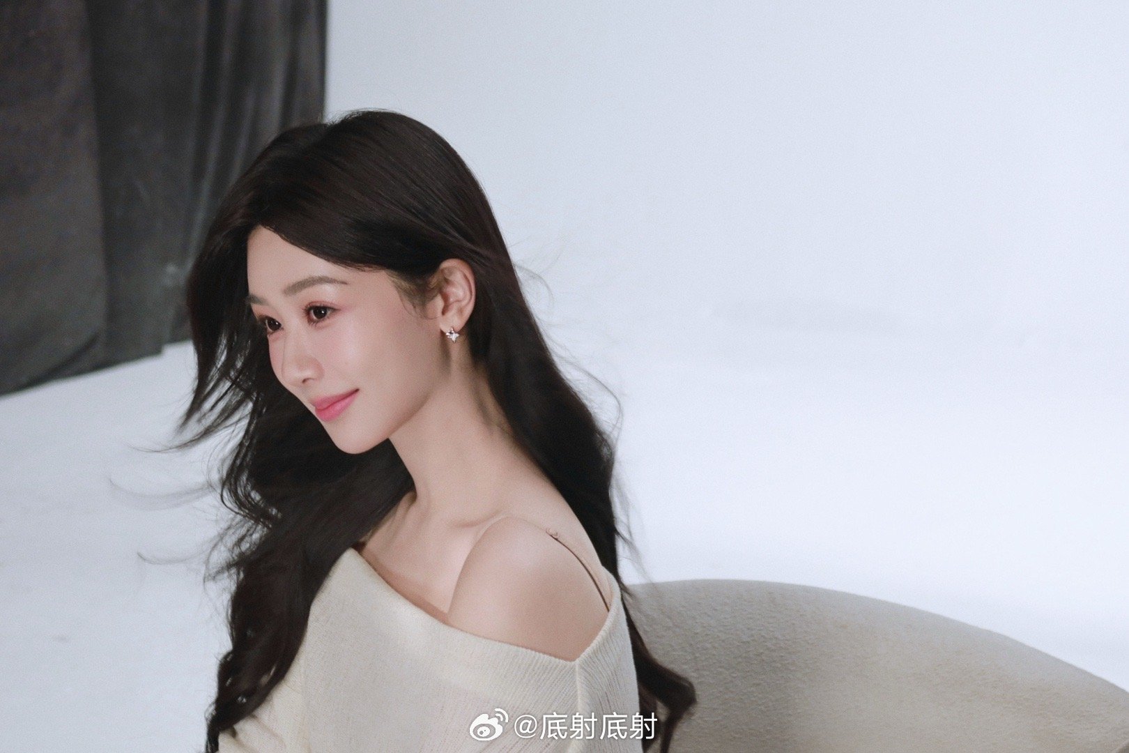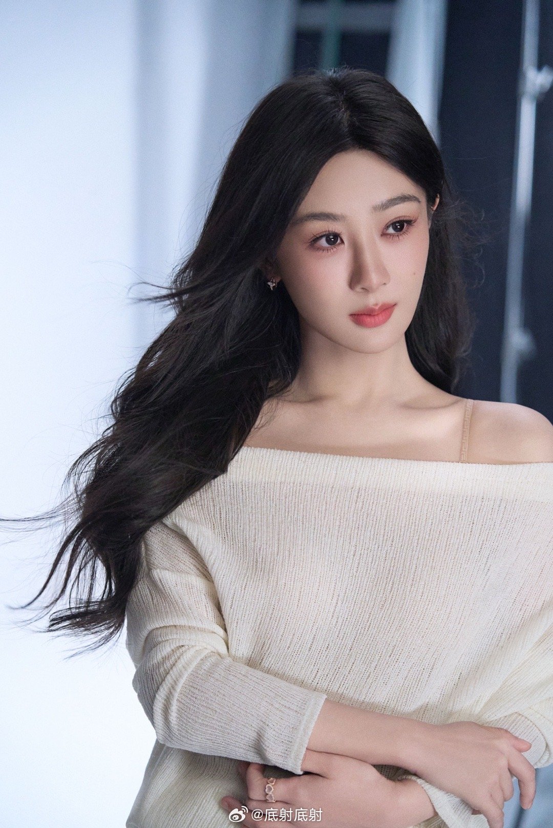 长发如丝覆玉肩,轻衫浅灰映窗前。回身一笑春风起,醉了流年醉了天。情脉脉,意绵