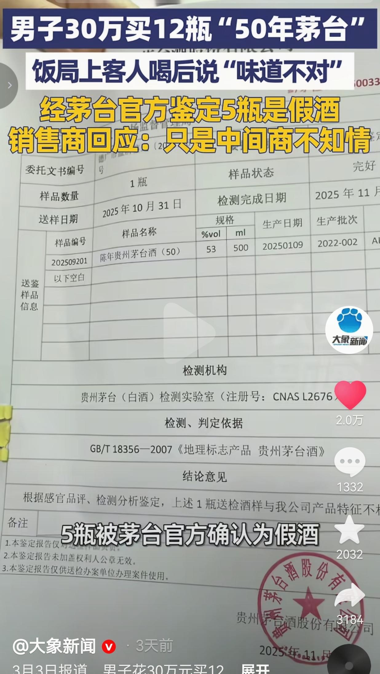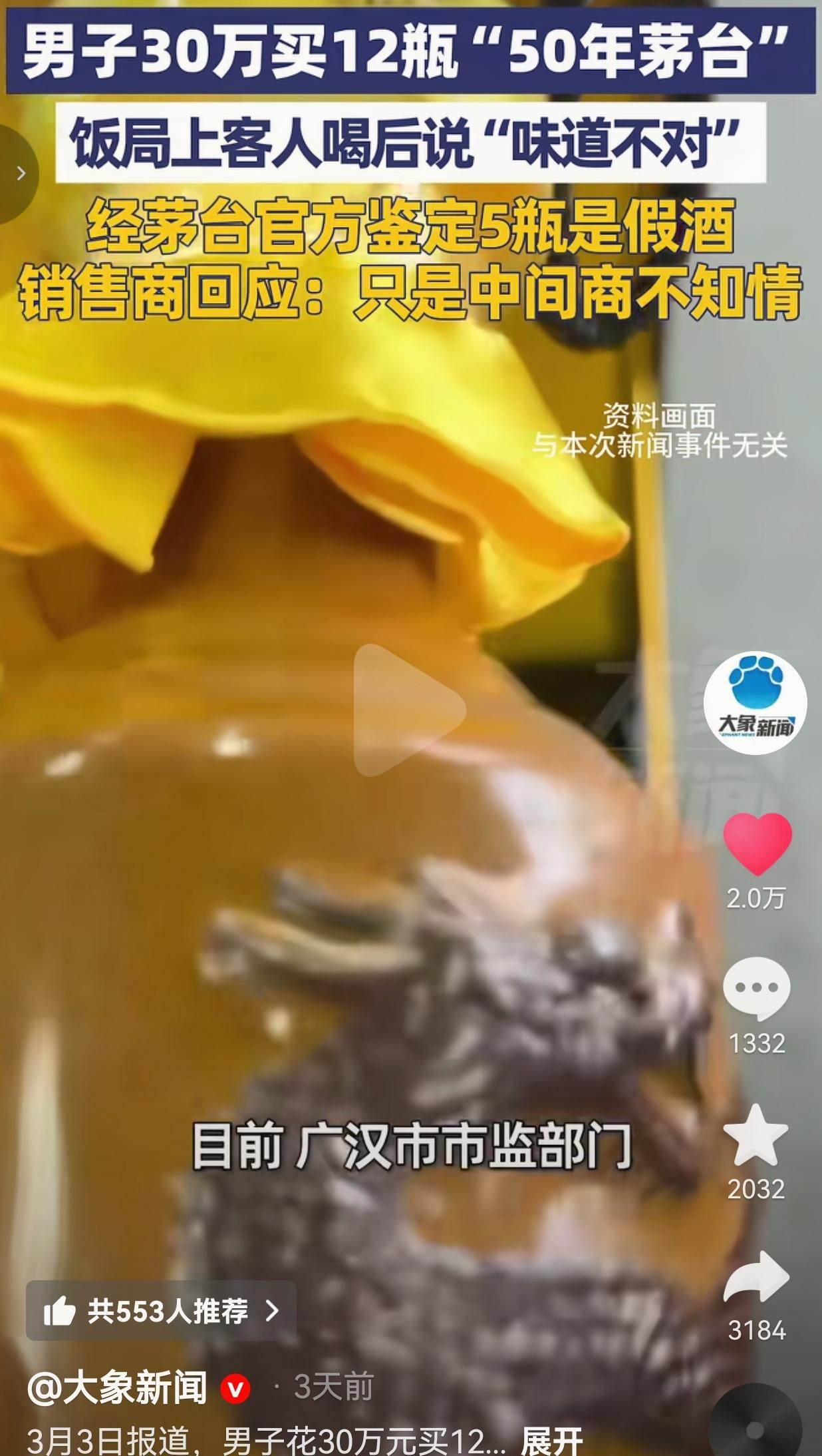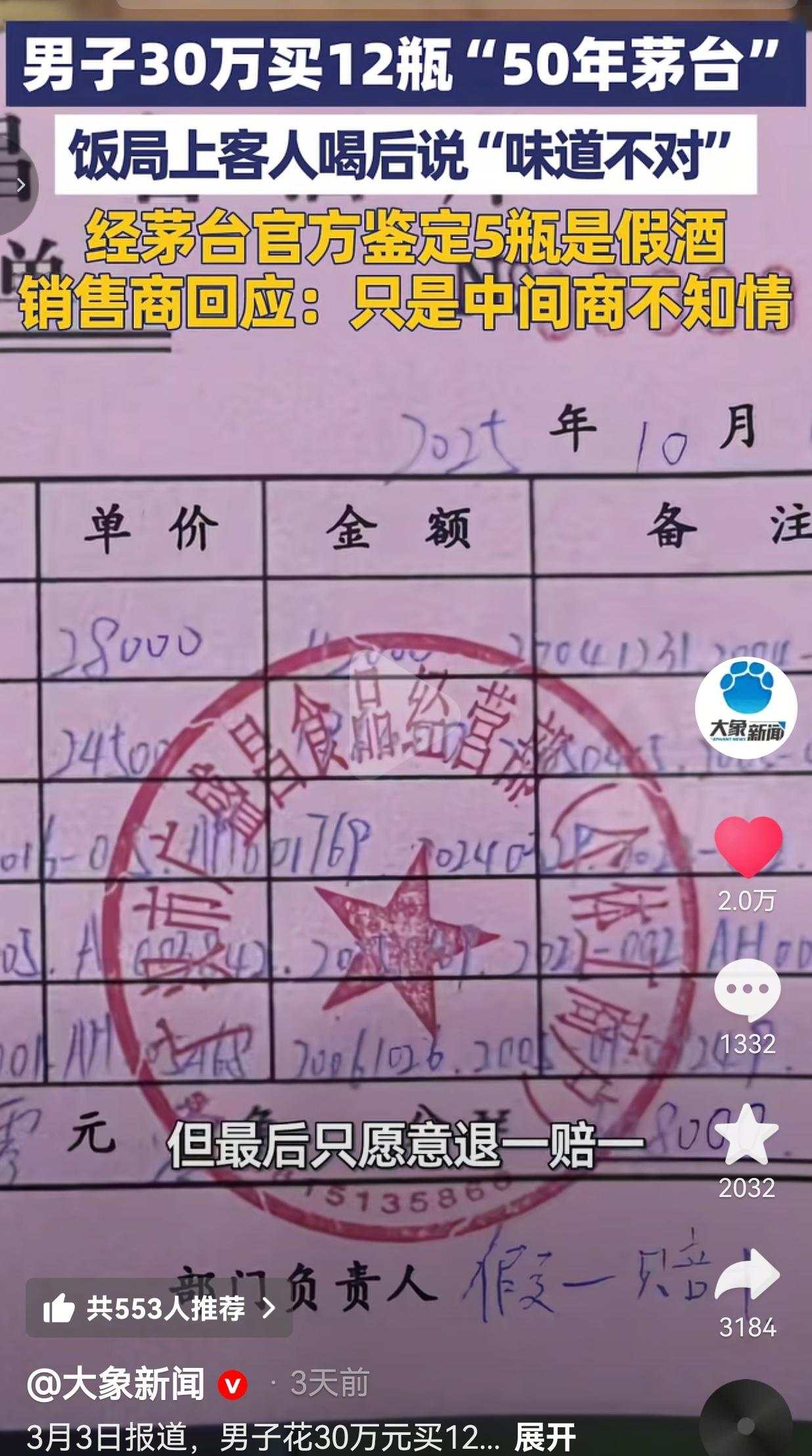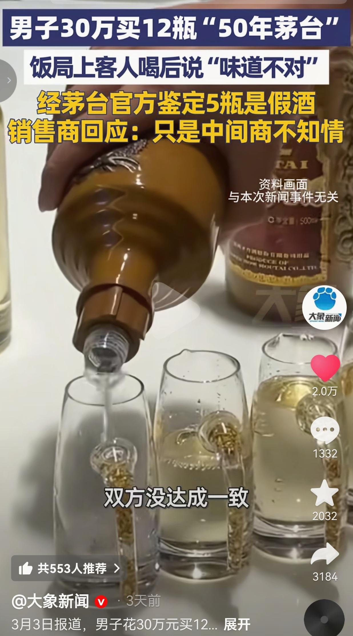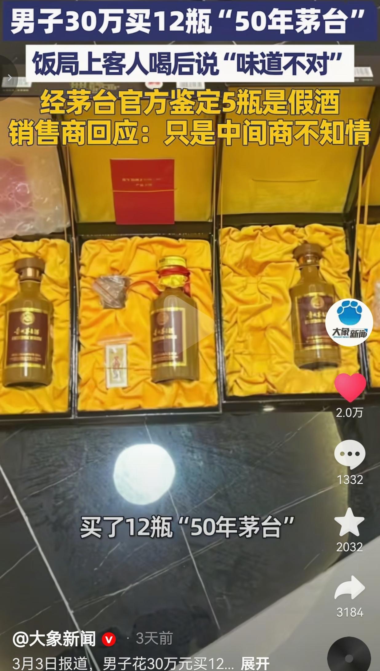 四川德阳的魏先生,花了整整30万,在广盛昌经营部买了12瓶号称“50年茅台”的酒。 30万啊,这可不是小数目,够普通家庭好好过好几年了,本来是想着宴请客人撑场面,结果呢?饭局上客人一尝,直接说“味道不对”,这才揭开了大雷——经茅台官方鉴定,12瓶里有5瓶全是假酒! 我看到这的时候,真的替魏先生捏把汗,也觉得憋屈。花大价钱买的好酒,满心欢喜招待客人,结果是假的?这不仅是钱的事儿,更是面子和信任的事儿啊!宴请的场合,拿出假酒招待客人,得多尴尬、多失礼?更可气的是,销售商居然还想甩锅,说自己只是中间商,不知情! 咱就说,做生意讲究的是诚信,你收着高价卖酒,哪怕真的是被上游坑了,那也是你的责任,不能一句“不知情”就完事了吧? 人家魏先生也不是不讲理,一开始商家还承诺“假一赔十”,真出了事却只愿意退一赔一、退一赔三,这差距也太大了! 魏先生让步说认6瓶假酒的赔偿,双方都没谈拢,现在市监部门都介入了,希望能给魏先生一个公道。 其实仔细想想,这事儿背后藏的问题太多了。首先是咱们普通人,怎么分辨高价酒的真假?尤其是这种年份茅台,包装做得跟真的一样,普通人哪有那么专业的眼光?就算是魏先生这样花大价钱的,也防不住商家以次充好、以假乱真。 再者,现在市面上的高端酒市场,水真的太深了。30万买12瓶,看似是“捡漏”,实则是掉进了商家设好的陷阱。 有些商家为了赚黑心钱,把假酒包装得天花乱坠,利用的就是大家“贵的就是真的”这种心理,把消费者当冤宰。 还有一点,咱们宴请宾客的时候,选酒真的不能只看“贵”和“面子”,更要多留个心眼。 30万的酒出问题,损失的不仅是钱财,还有对客人的诚意。有时候看似体面的场面,背后可能藏着让人糟心的真相。 我真的特别理解魏先生的心情,花了血汗钱,还受了一肚子气。这种被骗的感觉,真的太难受了。 也希望这件事能给大家提个醒,买贵重物品尤其是烟酒这类,一定要去正规渠道,保留好票据,别轻易相信所谓的“内部渠道”“低价好酒”,天上不会掉馅饼,掉下来的大概率是陷阱。 最后,我想问一下所有的人:如果是你花30万买到了假酒,商家只愿意退一赔一,你能接受吗?