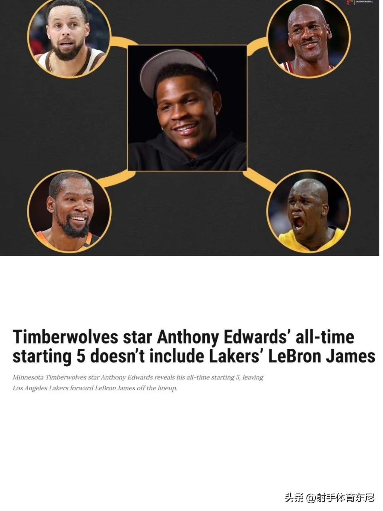 森林狼核心爱德华兹评选自己心中的历史首发5虎,现役3人在阵,无詹姆斯! -控卫:史蒂芬-库里 -分卫:安东尼-爱德华兹 -小前:迈克尔-乔丹 -大前:凯文-杜兰特 -中锋:沙克-奧尼尔 特殊群体不是说华子是GOAT詹的小迷弟吗?又遭打脸了![捂脸][捂脸]