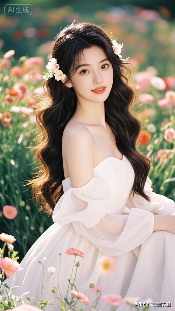 温柔甜美的花海少女,绽放如花的笑容