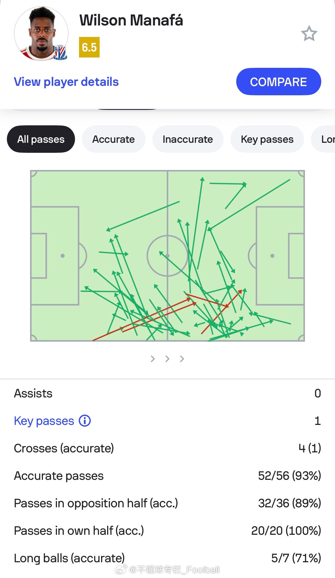 马纳法昨晚确实和上赛季末段表现出了非常不同的面貌。从数据上来看就非常明显:与上赛季末同样是主场和大连英博的比赛相比,申花昨晚的控球率更高(69% 对 63%),但马纳法的触球次数更少(81 次对 101 次),丢失球权次数更少(11 次对 21 次),丢失球权比从超过 20% 降到了13%。