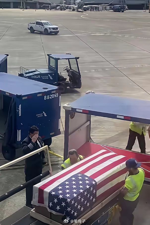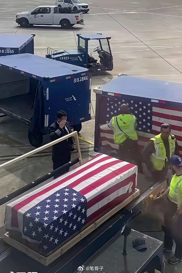 看看这机场工作人员,一个比一个淡定,抬棺材的姿势熟练得跟搬快递似的,估计是见多了这种“爱国包裹”。当初喊着“维护和平”的大兵们,现在全变成了需要“维护”的木板,这剧情反转得比好莱坞编剧还敢写!更绝的是旁边那个敬礼的哥们,不知道是在致敬战友还是在致敬这出荒诞剧。