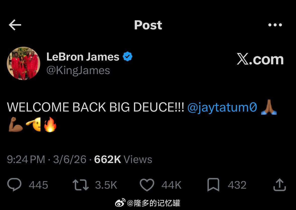 都好哥们儿!老詹老杜在社媒欢迎塔图姆回归